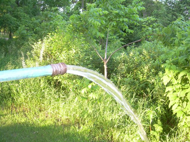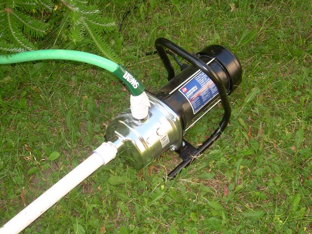 Well, an update on my electric pump: it has been steadily pumping for several weeks now, but slowed noticeably a few days ago. Took the hoses off, cleaned a grasshopper and some weeds form the intake, put it back together and it wouldn't pump. Dragged it up to the house and flushed it out with a high pressure hose and several large pieces of grass hopper came out, apparently just the right size and shape to plug everything up. So, based on some input from one more knowledgeable and thorough than myself I installed a footvalve/strainer unit (it goes on the end of the input pipe, is cone-shaped with 1/8" diameter holes and includes a one-way valve which keeps the water and therefore the prime in the pump in the event it was inadvertently shut off (power failure) elimenating the need to re-prime and reducing the possibility of the pump failing if run dry. And it cost a whole 15.00, what a no brainer :rolleyes: