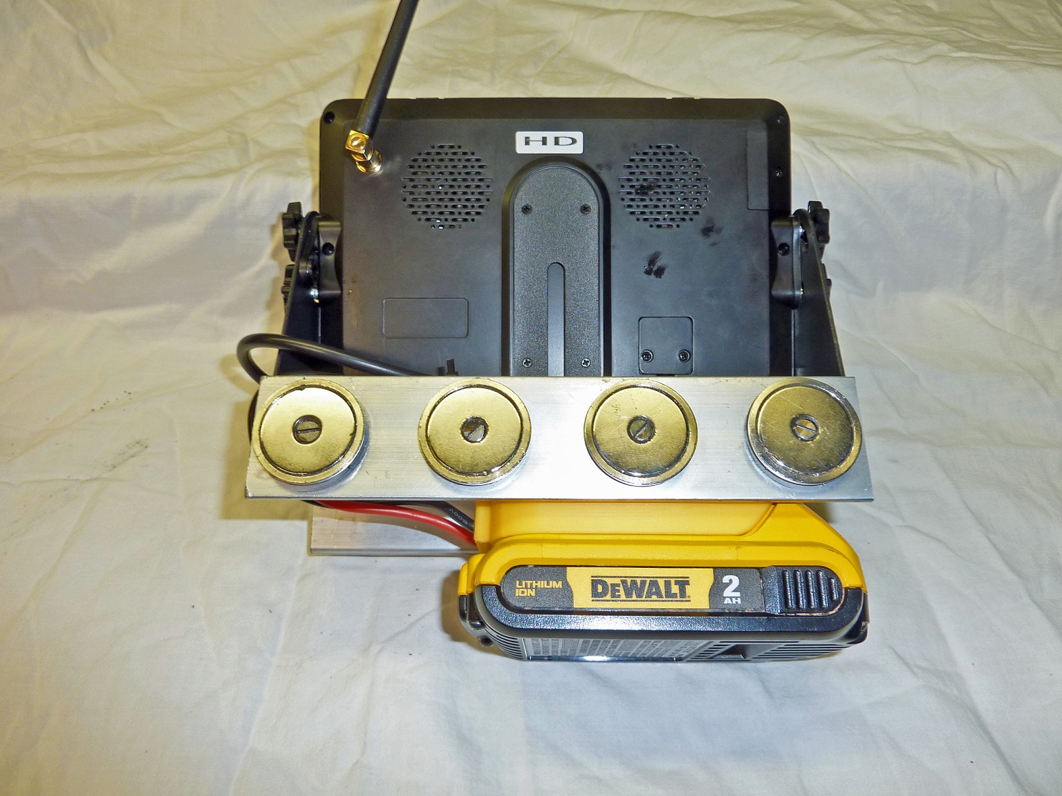 I have a fairly cheap wireless camera system I use on one of my tractors. I occasionally need to use a camera on other equipment as well. Rather than buy multiple cameras, I converted the one I have into a portable rig. Although the camera video is wireless, both camera and display require power. I used cordless tool batteries with adapters (in my case DeWalt), a few strong magnets and some 3" aluminum channel to make camera and display mounts that are truly portable and can be attached to any metal surface. These inexpensive battery adapters are available for most cordless tool battery brands. Even small 2 AH batteries will power the camera & display for several hours.