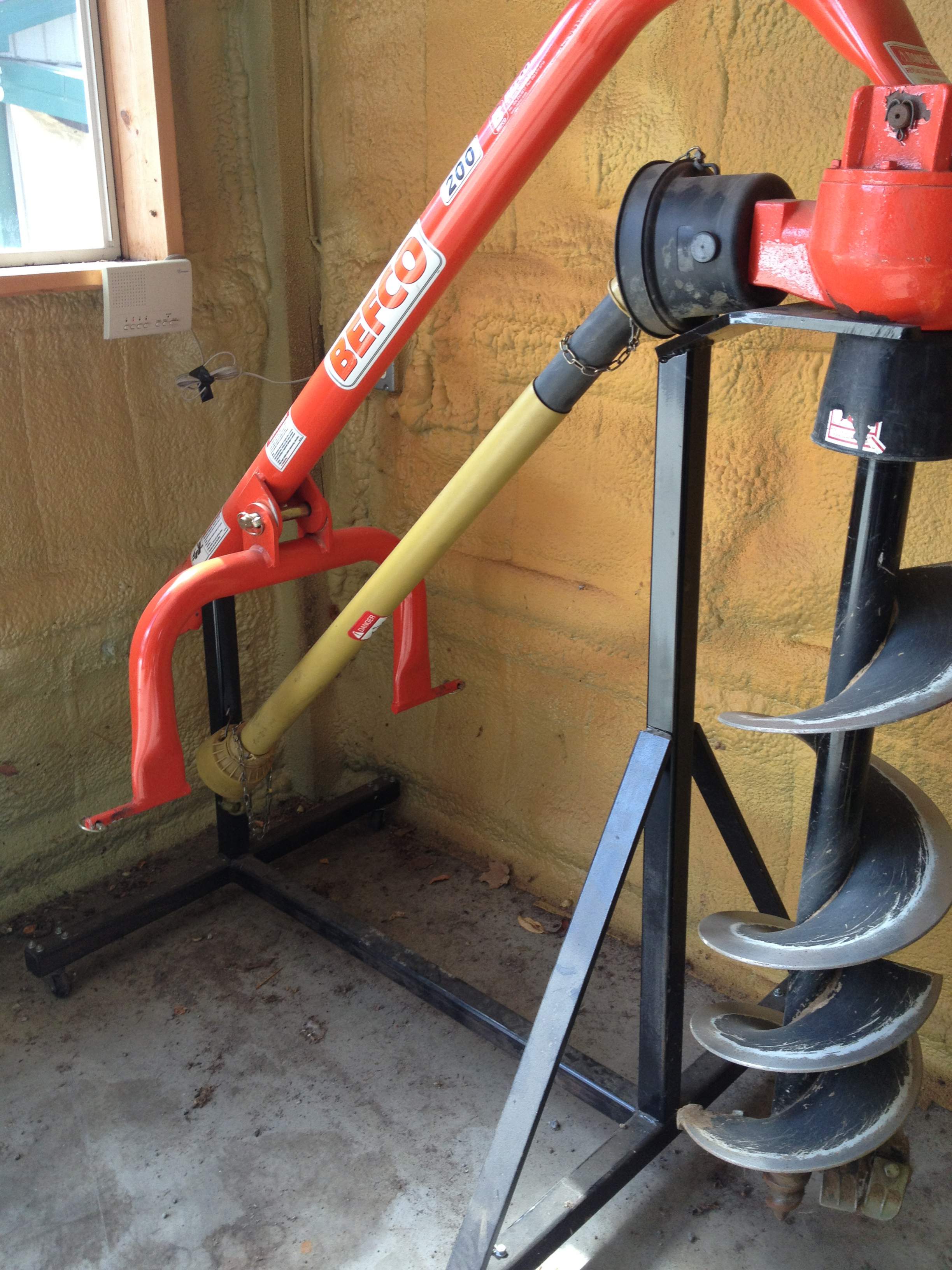 Got tired of having to take the PHD apart every time I wanted to attach to my tractor,so I made this cart.It has wheels on it so you just roll it to the tractor and drop in the pins, connect the drive shaft and it's ready to dig.
