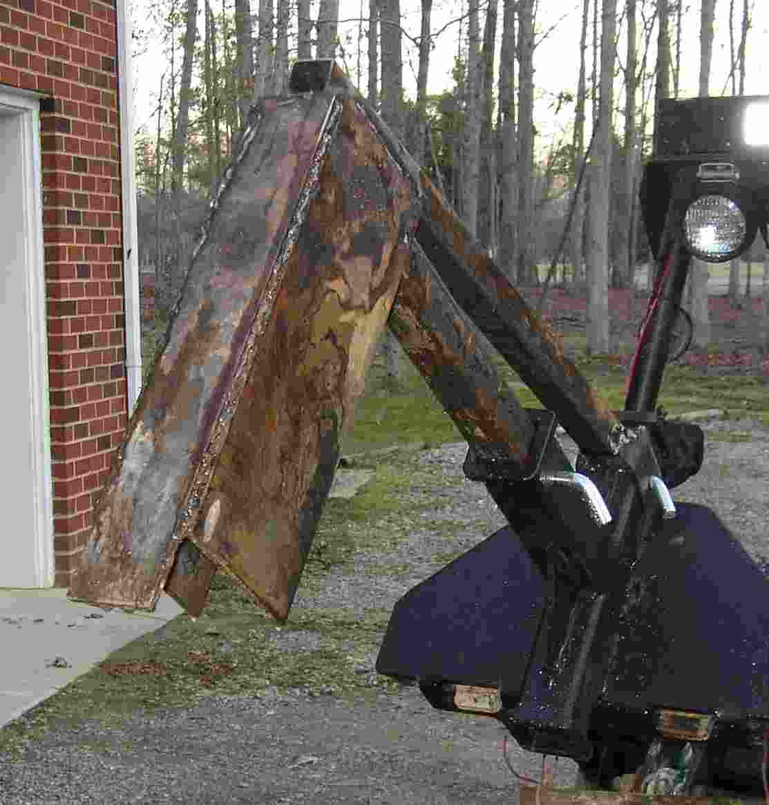 </font><font color="blue" class="small">( Bob, Sure looks sturdy enough. What size is your box tubing, and how wide is the assembly in the trench? How will you control the depth? If you leave it in float, it might dig more than you want. Let me offer this suggestion. Put some adjustable wings on the part in the ground to limit the depth. Just roll backwards until the bucket is full, and you should have a nice even trench. )</font>