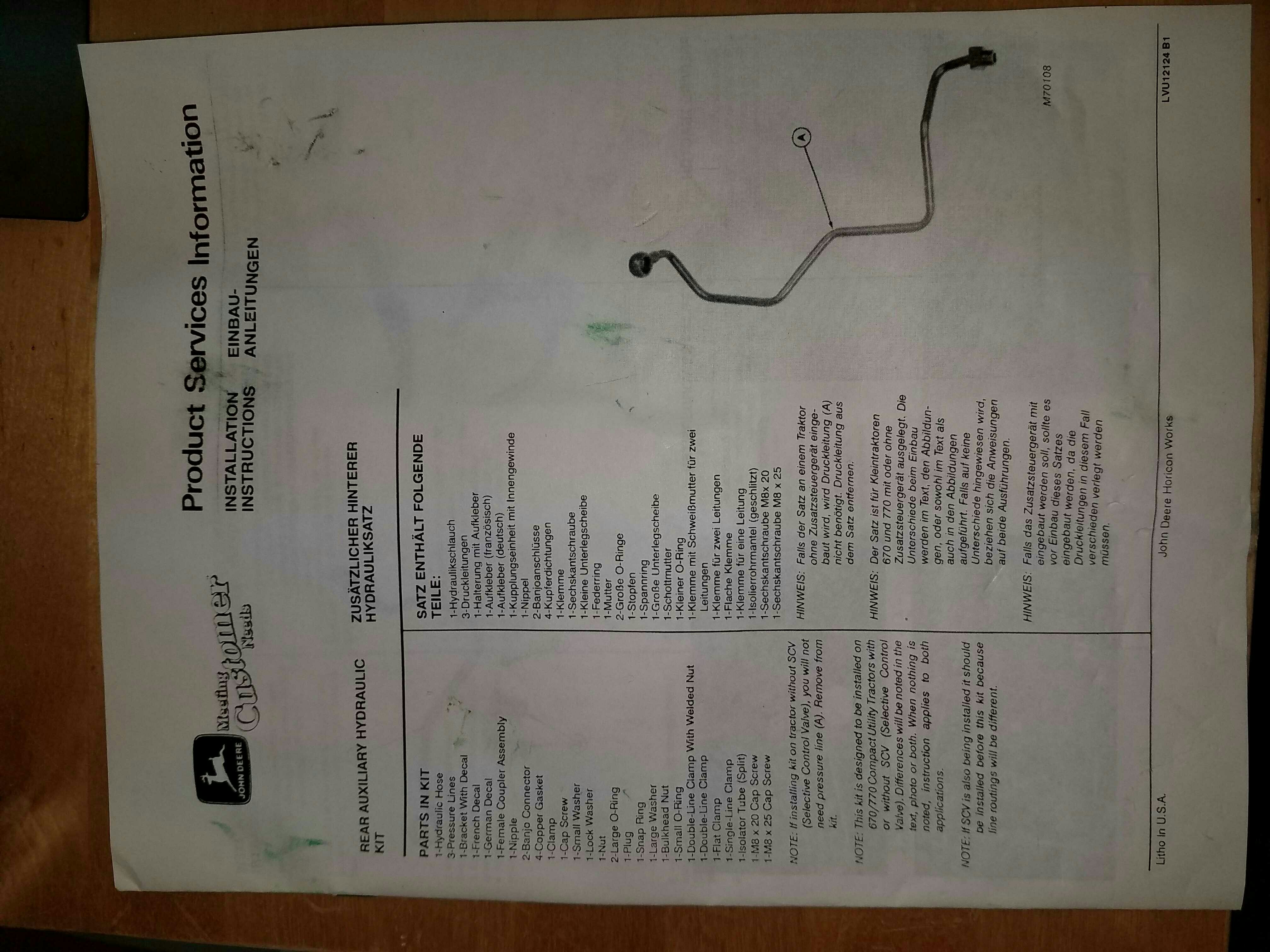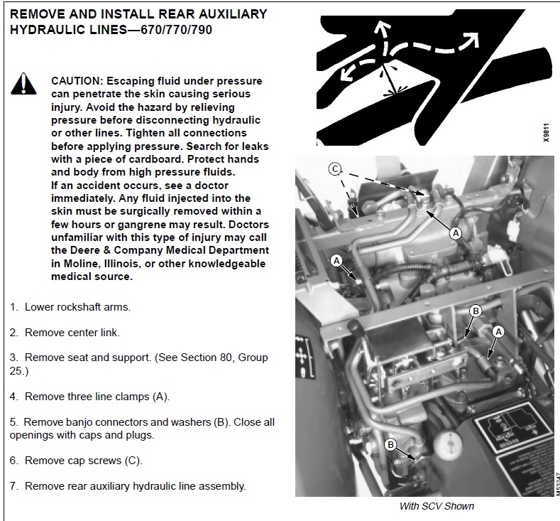 And I have the parts catalogs for the 7 and 790. There is an exploded view of the PB kit but it's not very clear where each connection attaches. There are 3 solid lines shown but one must be for tractors without the DSCV control. Assuming you have the DSCV for your loader, it appears that both lines tie in there and not the rockshaft cover.