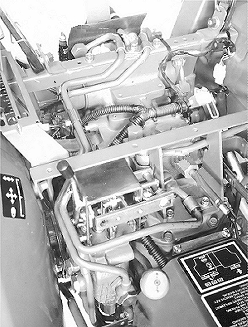 I got home and had a look at my tractor. UN-fortunately, I cannot see a thing with the cover in place under the seat (it's off in the photos you posted). Let me know how badly you need the info, it looks like I could pop that cover off pretty easily if you want.