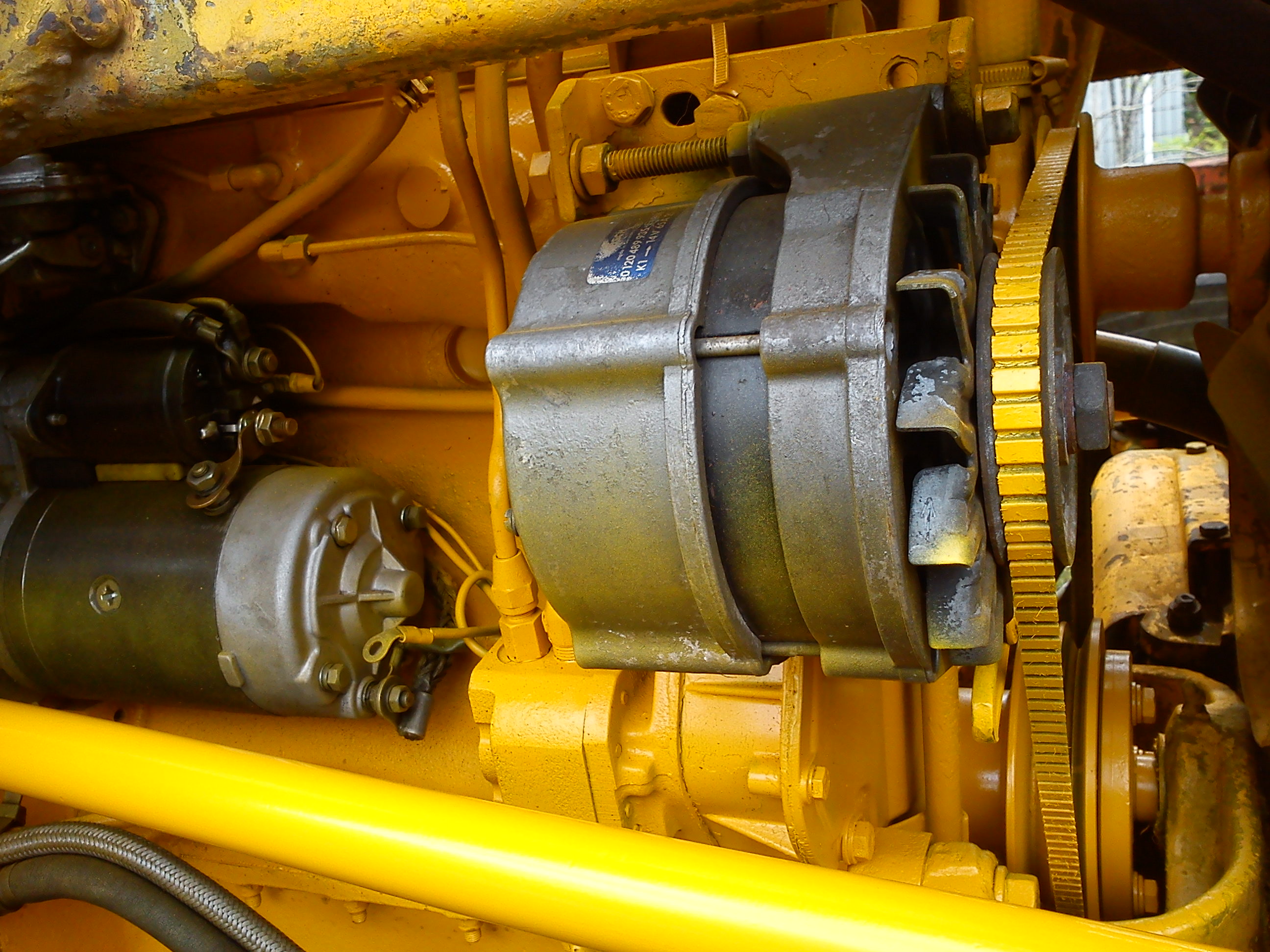 Here's a pic of the RH side of my loader's engine, straight after I reconditioned it and reassembled the tractor about three years ago - the other reason I want to ensure not too much P/S oil mixes with the engine oil. Does your PwrStrg pump look similar and the reservoir is forward of the radiator, or does it have it's reservoir built onto it? It looks quite dis-proportionate because of the camera angle, but you can see it clearly below the alternator.