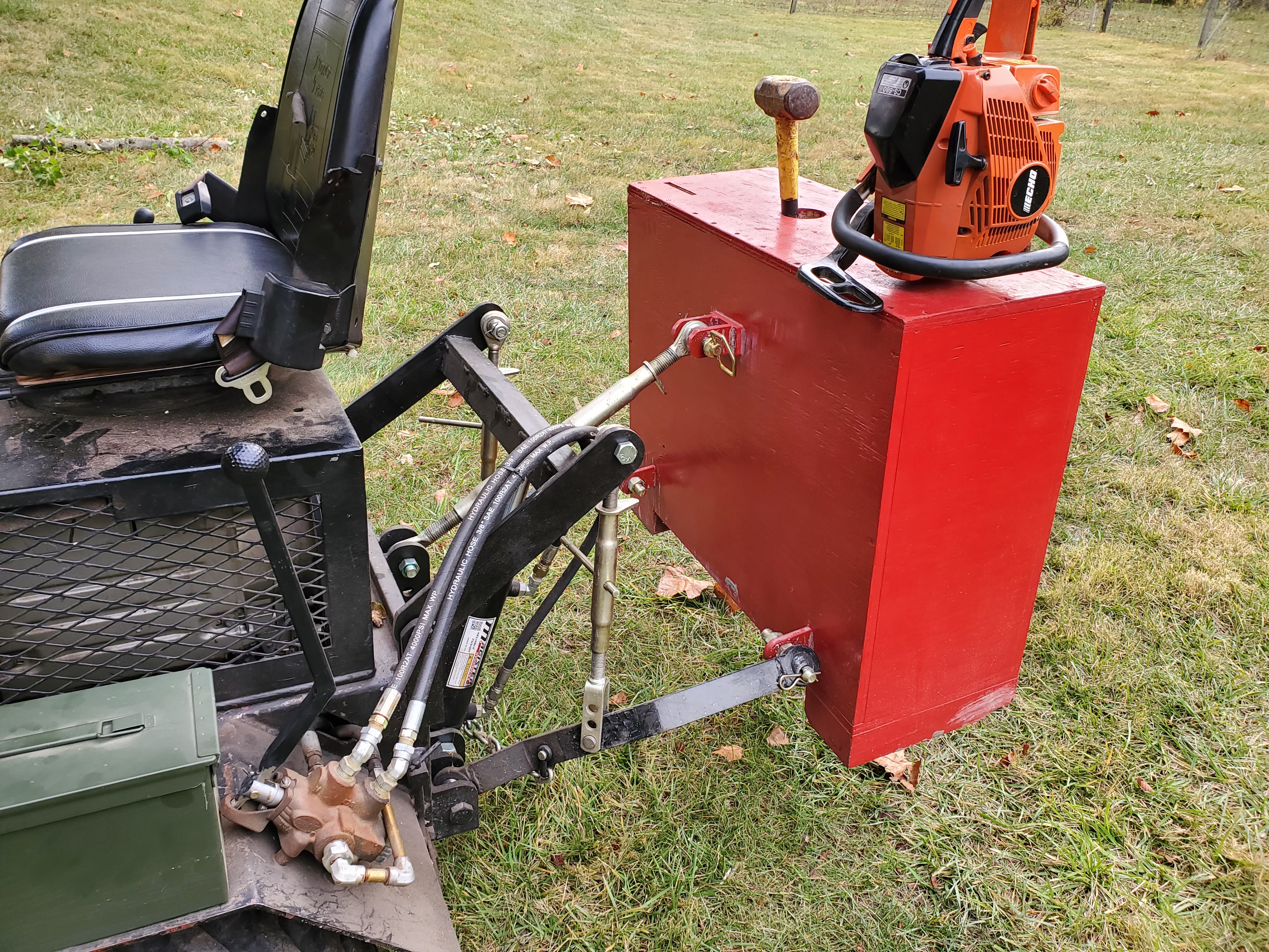 This is the idea that I was trying (probably not to well) to say regarding the 'Bobcat skid steer' style mounting, I meant just this, a full backhoe with boom, dipper, swing, but carried on the front like a skid steer. Years ago I bought off this guy when he used to sell them on ebay for $50 (」25 at the time) this plan -