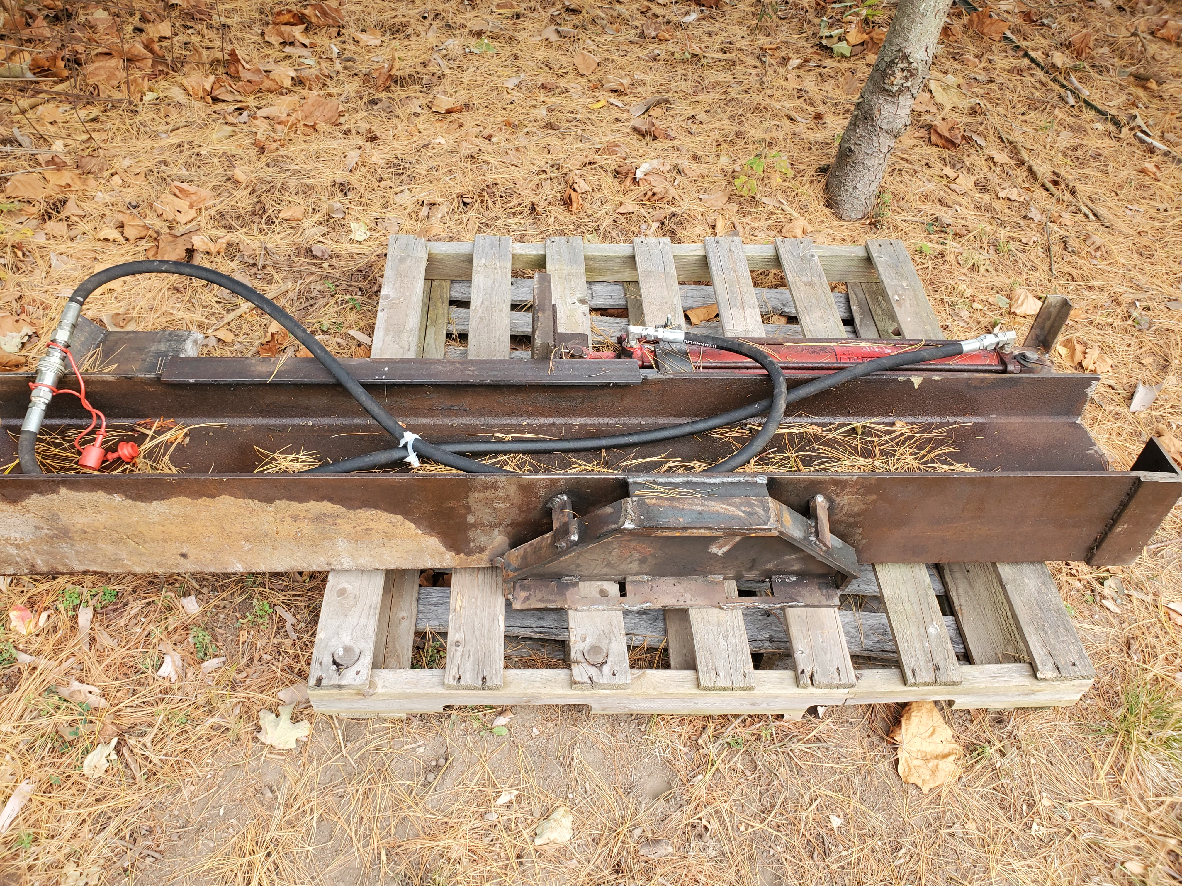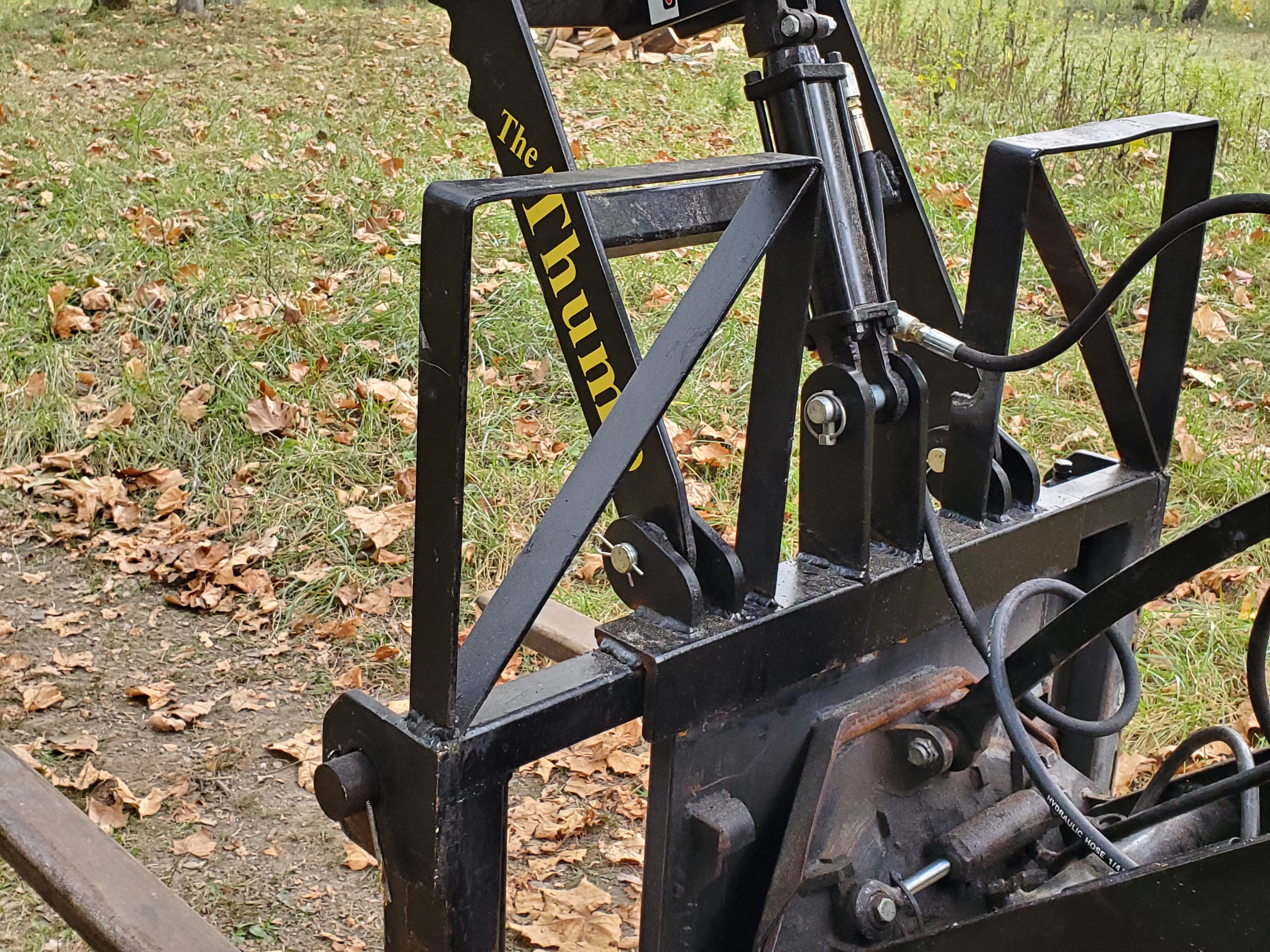 There is a pic here of the hoe mounted on one of his skid steer designs, hoe itself weighs 400 Lb when built.
