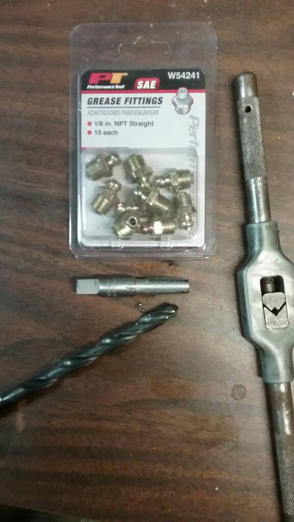 Back to grease fittings, I fixed it. I used 1/8" NPT fitting so had to drill quite larger. Cleaned after blowing out. Pipe thread so tapered fit, it took a lot of pressure with 7/16" socket installing it, it was just up to inside so worked great. Won't come out now. 20200916_184505.jpg20200916_184539.jpg20200916_184554.jpg