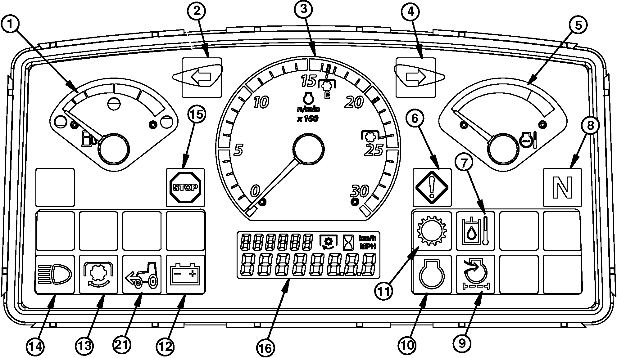 The only warning light is an orange triangle with an exclamation point that flashes.