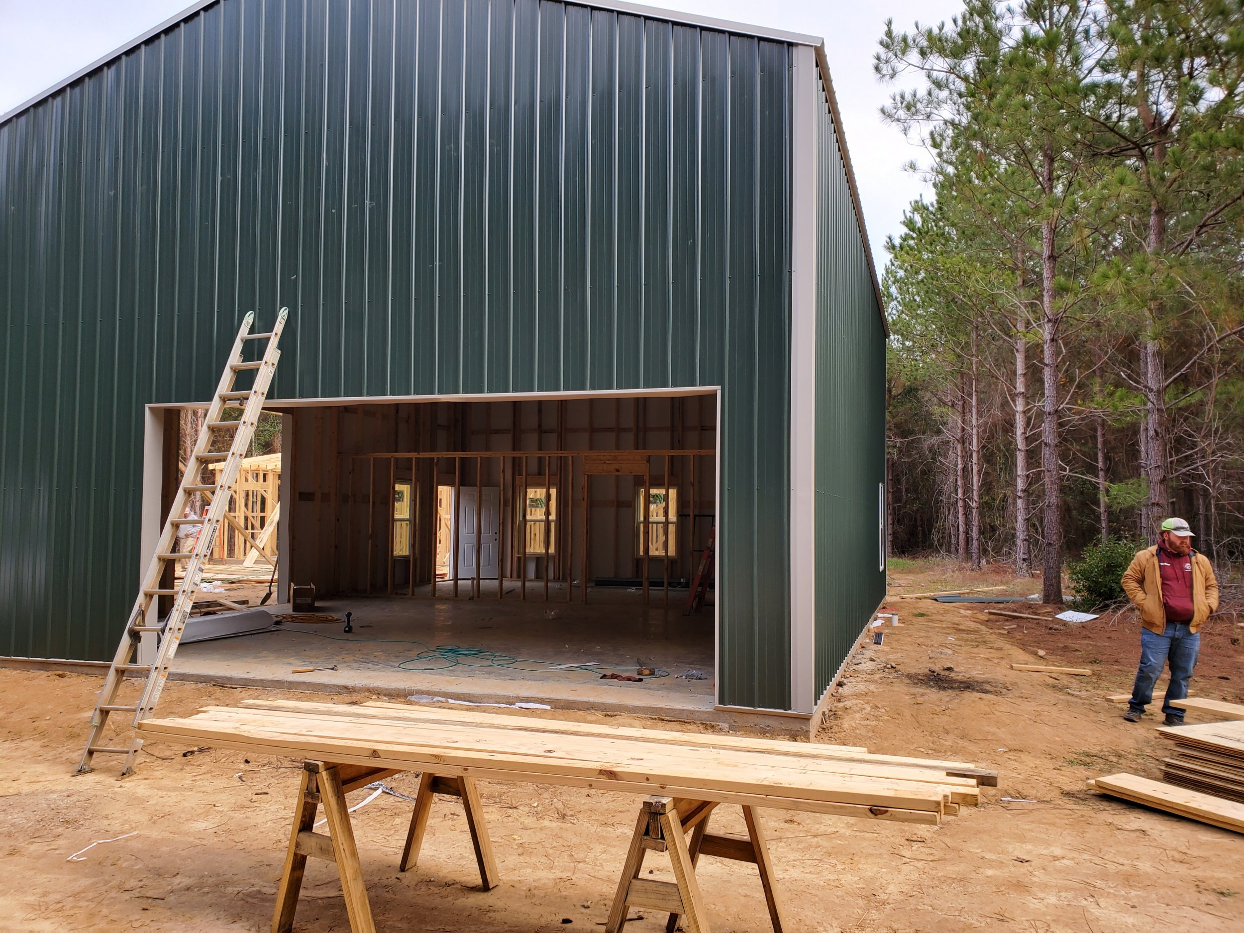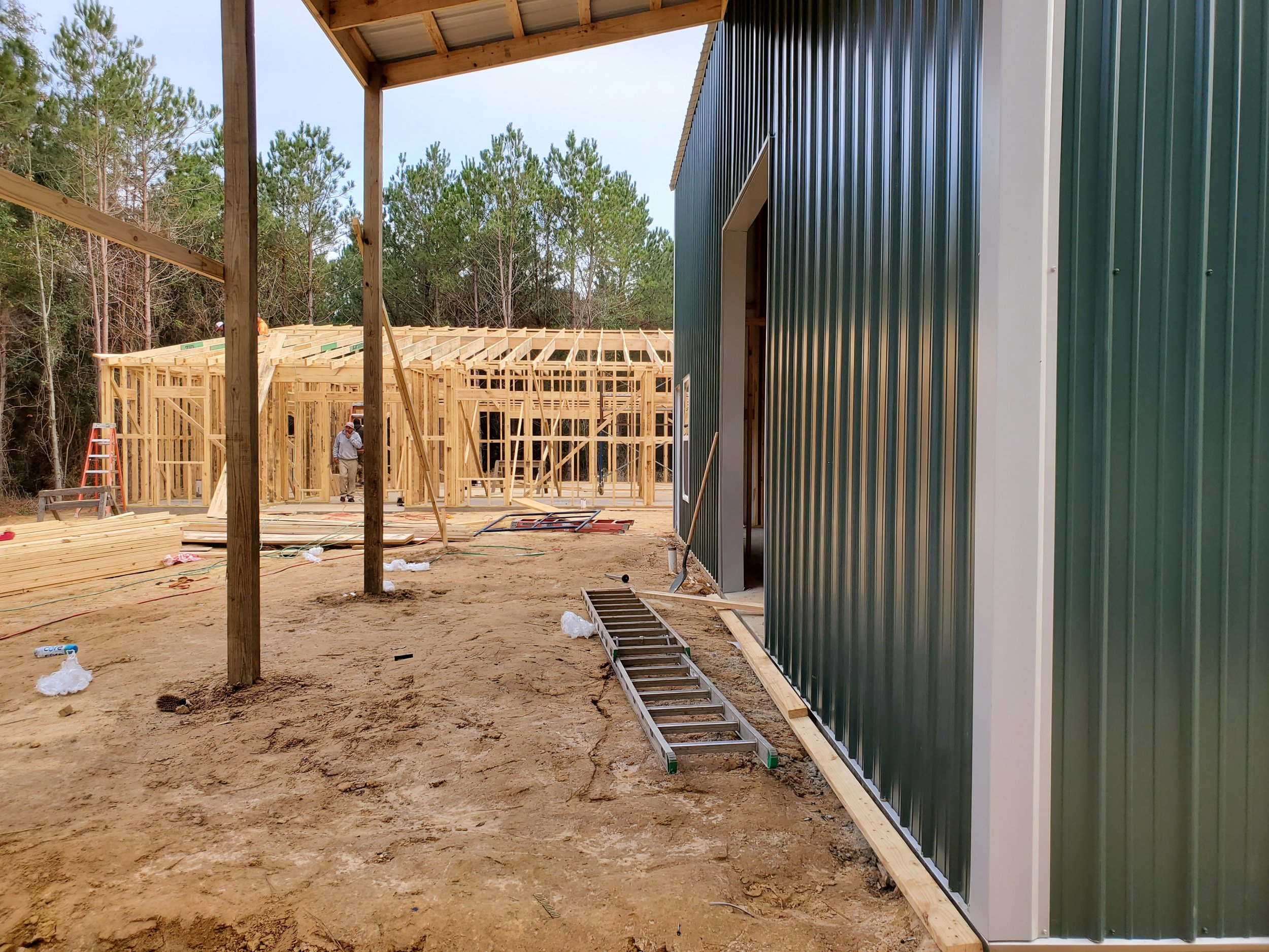 We bought our ~20 acres of heaven here in NE Texas about 2 years ago...its been our retirement plan for 20+ years. Unfortunately, it coincided with the virus... The framing is the shop, 40x30x16. They will start on the house tomorrow (foreground). It is 40x50, with a single slope roof. The view is from the tree line looking toward our back porch.