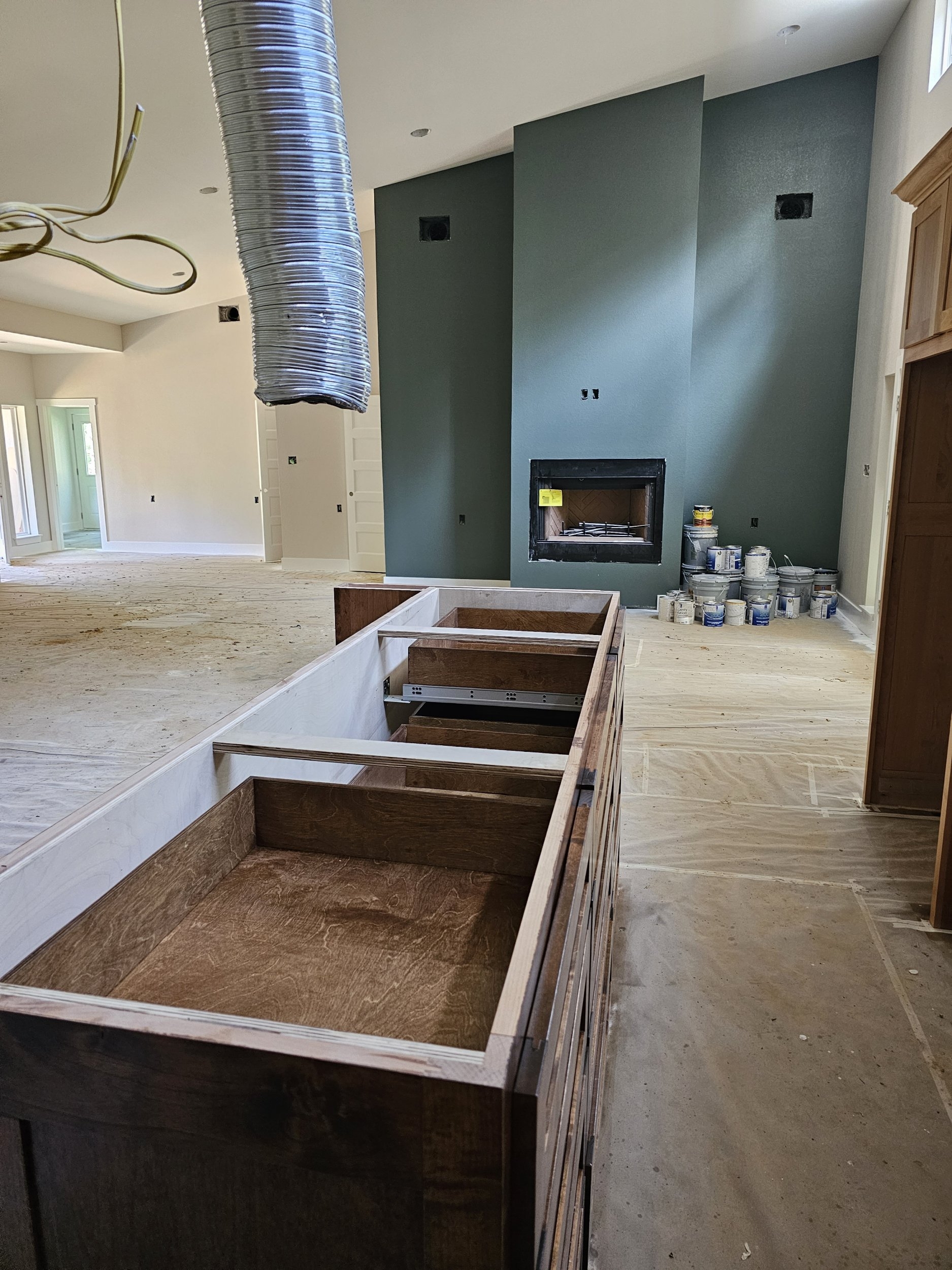 The fireplace will have some stone facing added, too. I'm looking forward to going back out tomorrow or Friday to see the countertops installed.