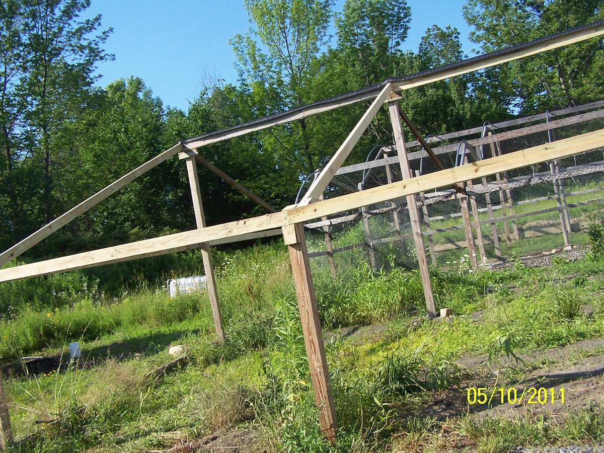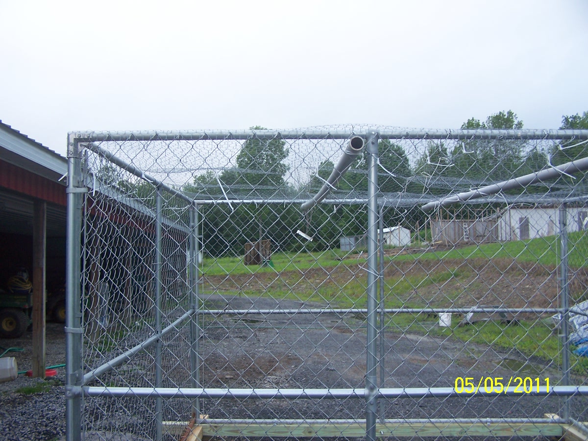 I have kennels laying all over the place not really what I want to use for dogs. But make a great chicken or duck tractor. this was what we did last weekend. The sched 80 is good for frame for chicken wire. If I wish to place tarp on the sched 80 will hold it when it rains. We placed eye hooks to drag to fresh place every day. Cuts down food by 30%. Great to reseed after a move. Throwing in some glover and Timothy and a little lime as it is already Fertile Ground. Great pasture not bad for hay and does not grown real high.