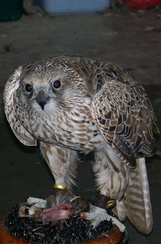 Mike the master falconry just sent me some new pictures of Zema the Falcon I am not sure if she has finished her molt yet or not but some odd color patterns. This is an email mike sent me, he is always teasing me that Jake his STUPID BLOODHOUND is a champion pheasant dog. And we kid about it all the time. So here is the email with PICs of Zema the Falcon and Jake the wonder dog(Only in his owner eyes). Poor Jake everybody hates him except Mike. Mike think Jake is very smart I am here to tell you he is not's. But Zema color pattern almost looks like a checker board. I thought you guys would enjoy seeing the new pics of Chicken Hawk(Zema nick name). Thought the bloodhound and the falcon look pretty cool together!
