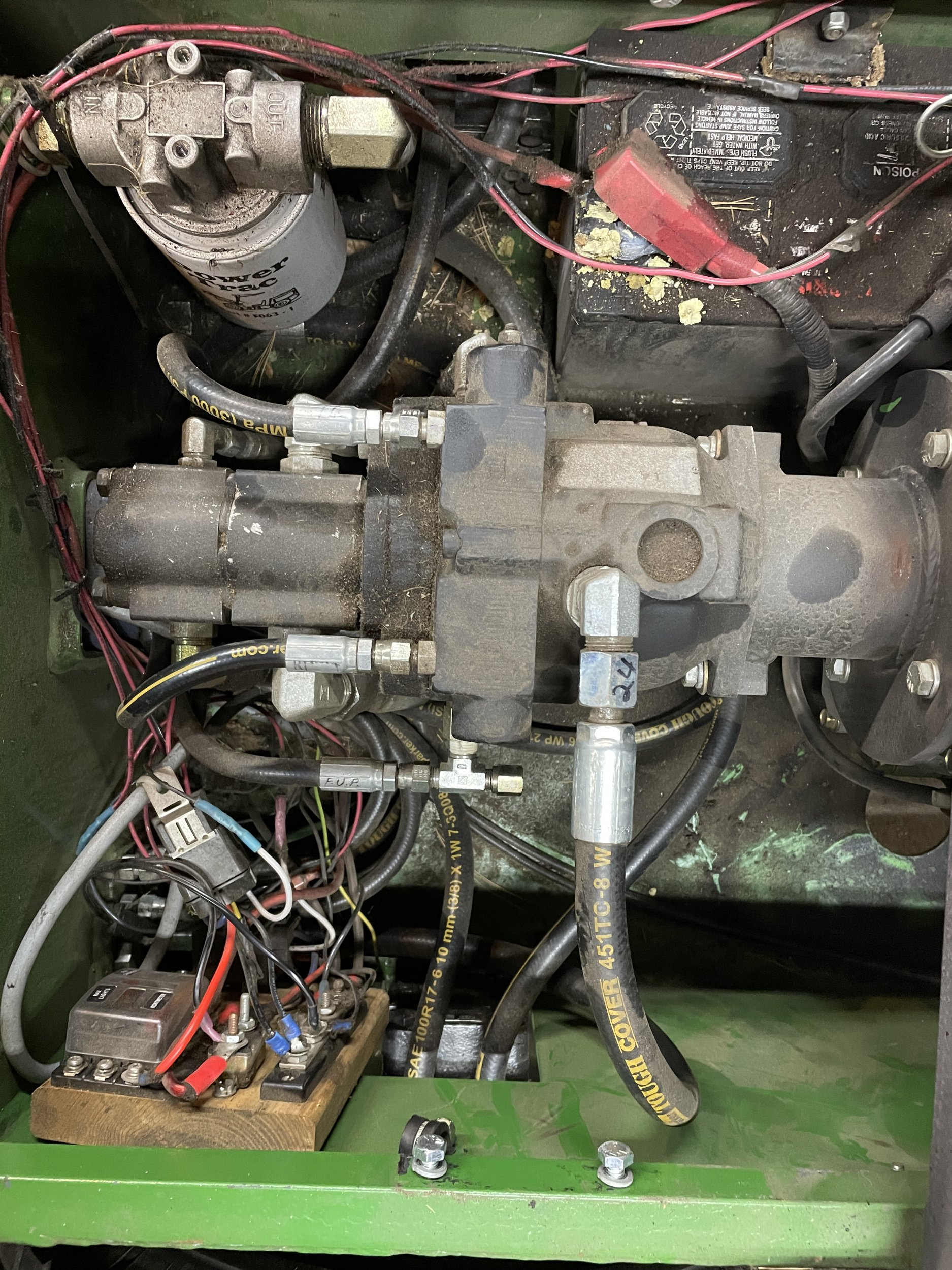 - Decide to start engine. All hydraulics but Tram pump work fine. So pump shaft is turning.