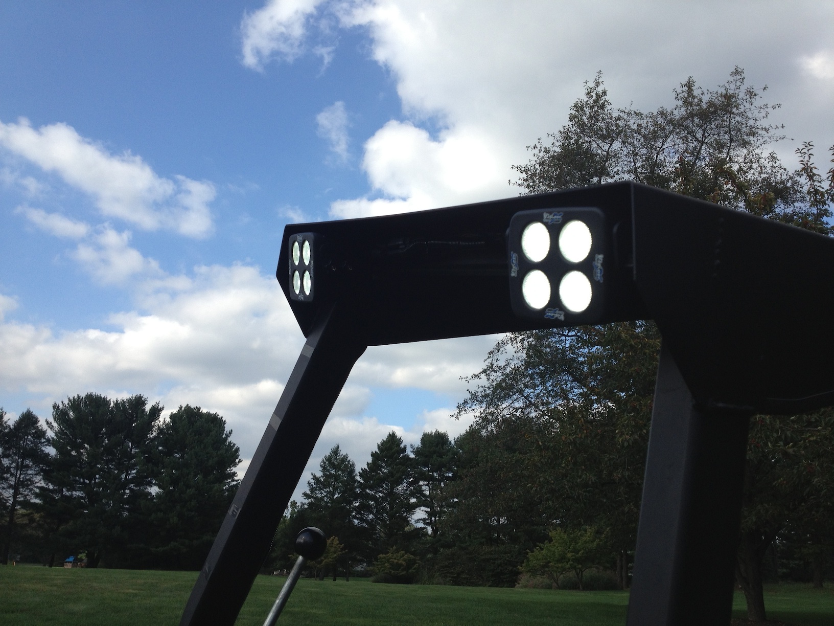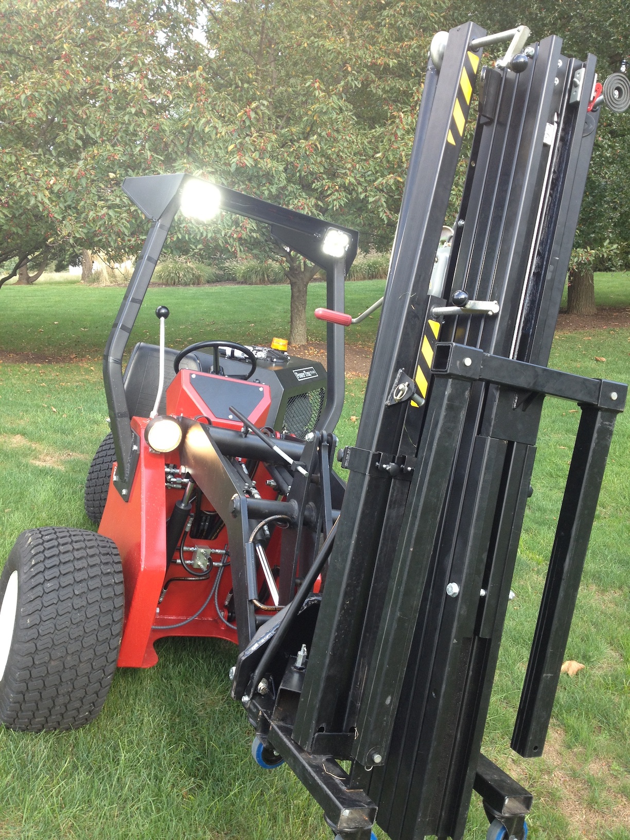 So far I have mounted attachment plates to our speaker stands, installed two 40 watt led lights on the ROPS (similar to SpringHollow), and lastly, attached a beacon and fire extinguisher like what's installed on the 1850s.