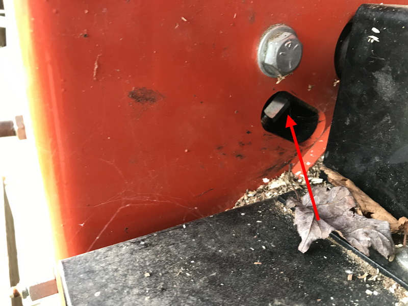 Below is a closeup of the opening you are supposed to use to access the zerk on the front of the jack shaft. It looks pretty big, but there was an angle zerk there, and it was so close to the edge of the opening I couldn't get a grease gun on it. I didn't have any tools that could enlarge it with the zerk in place, and after taking it out I couldn't reach back behind the pulley to get it back in anyway. The shaft had rusted enough that moving the pulley seemed like a challenge I wasn't up to.