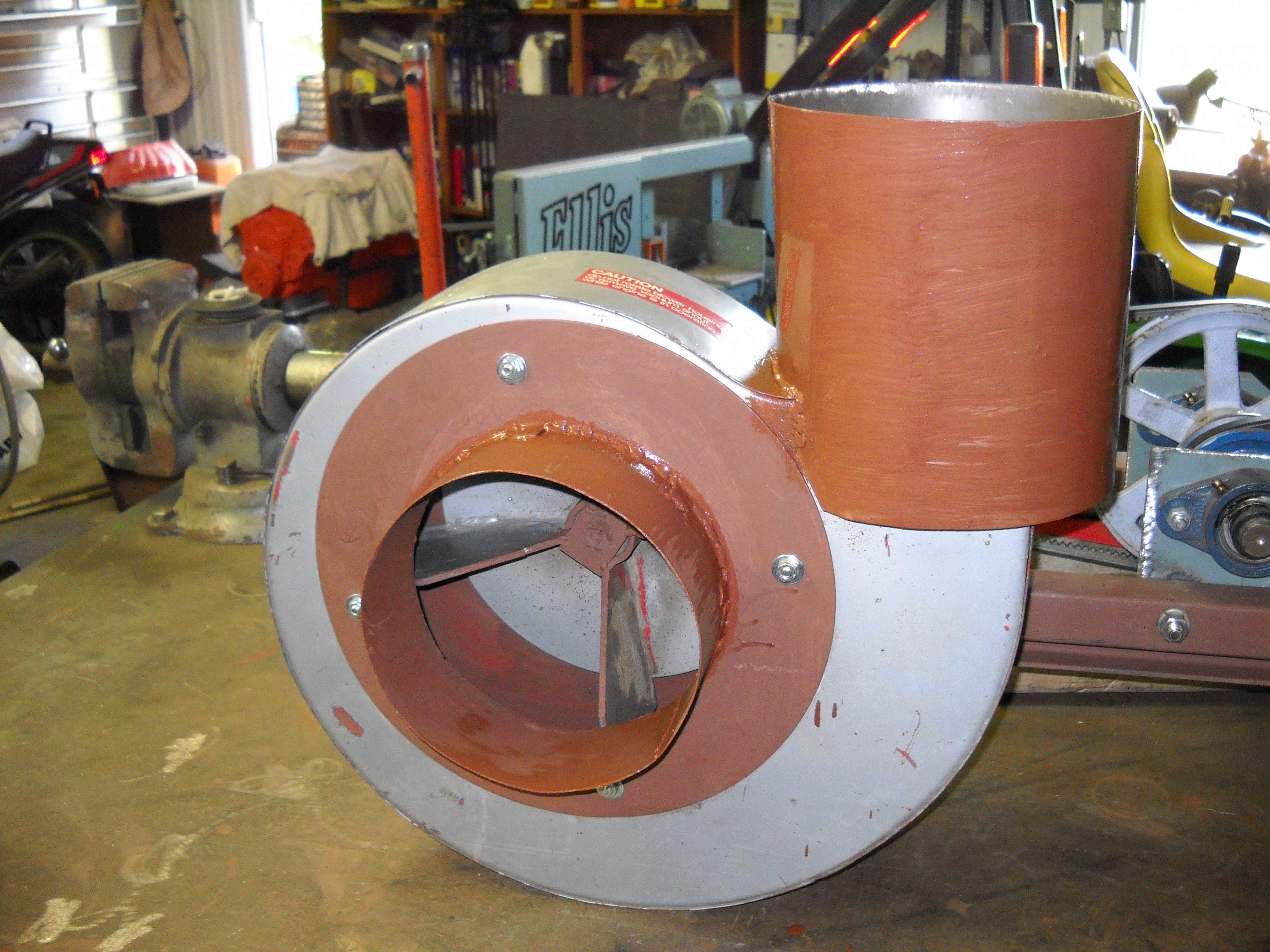 That "fan" would be about perfect. Gotta look around and see if I can find one. Second choice would be an impeller off of a snowblower, modify it, and mount it.