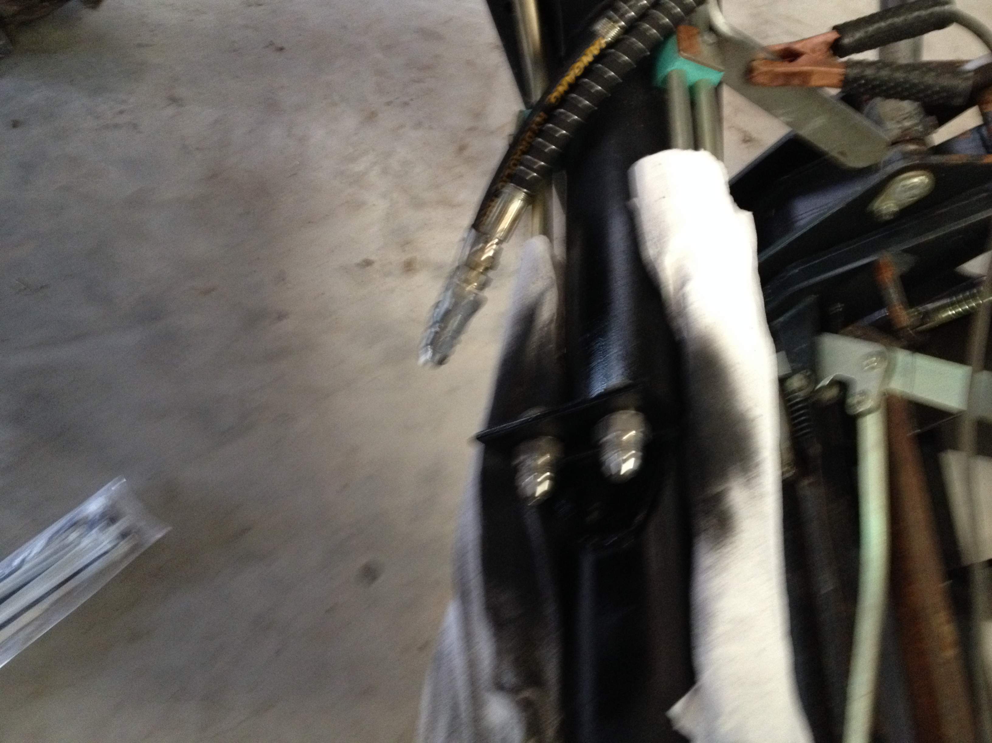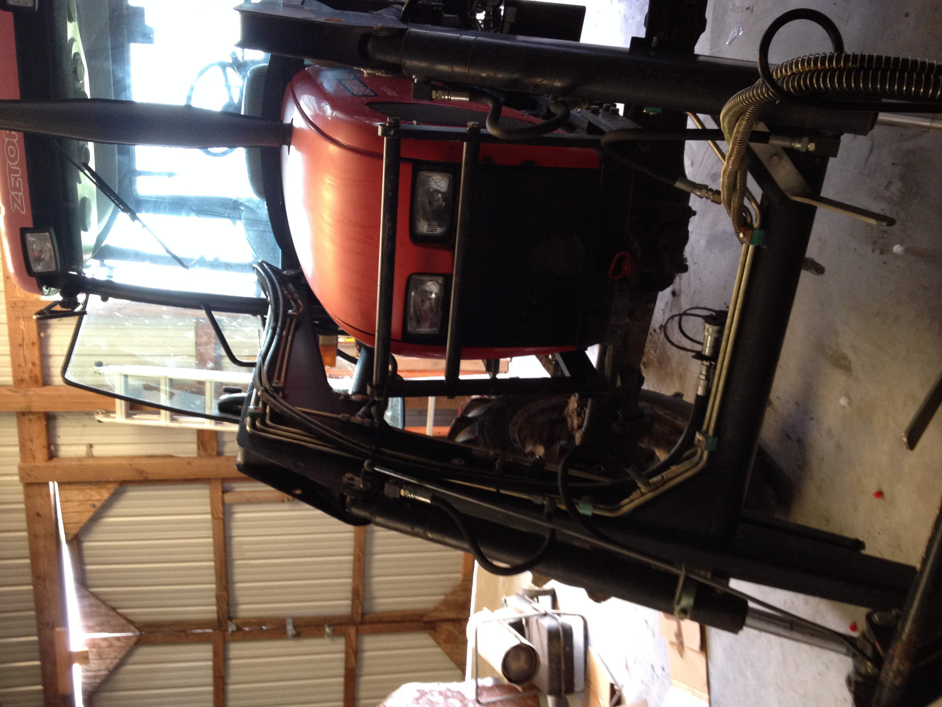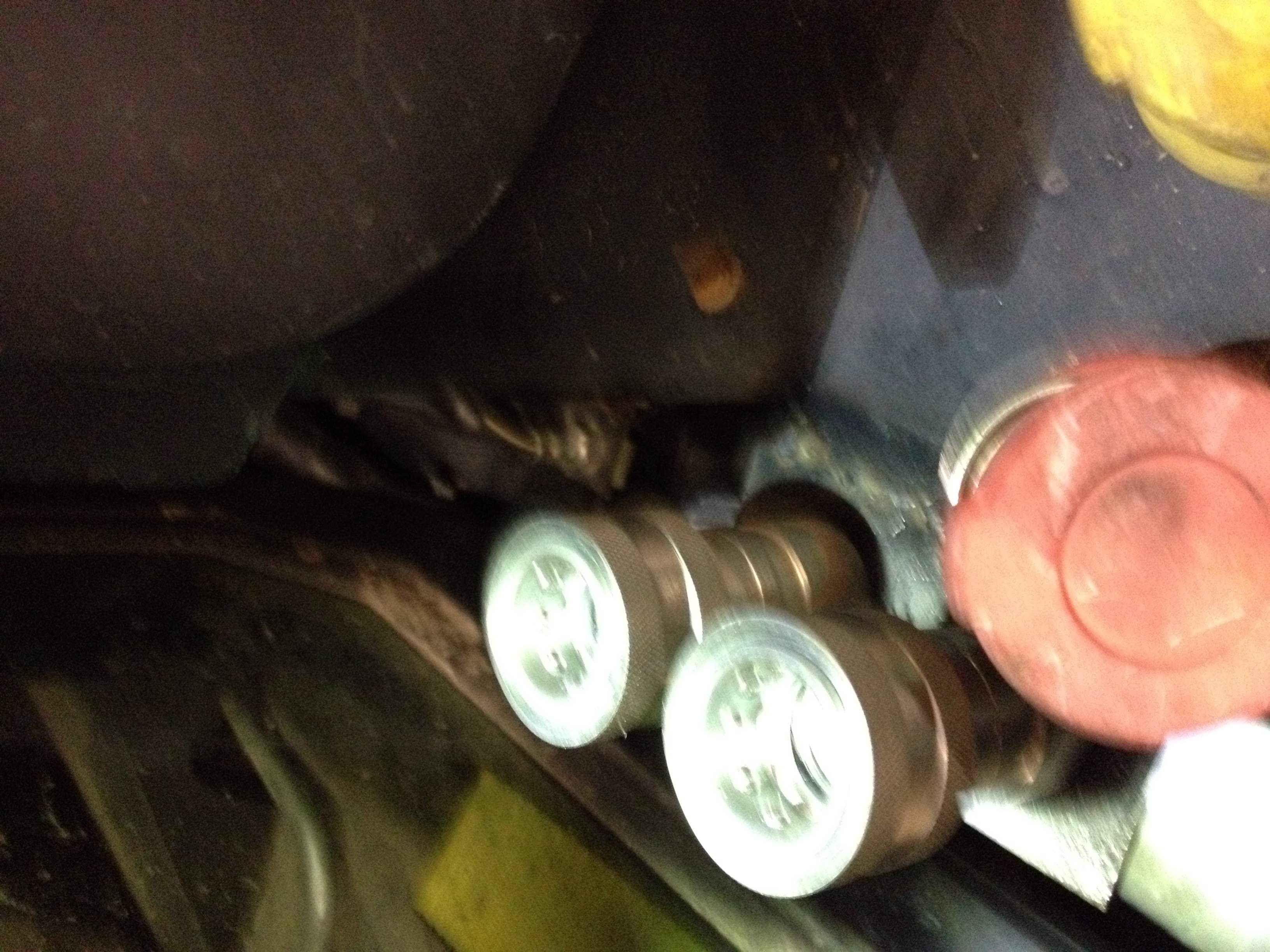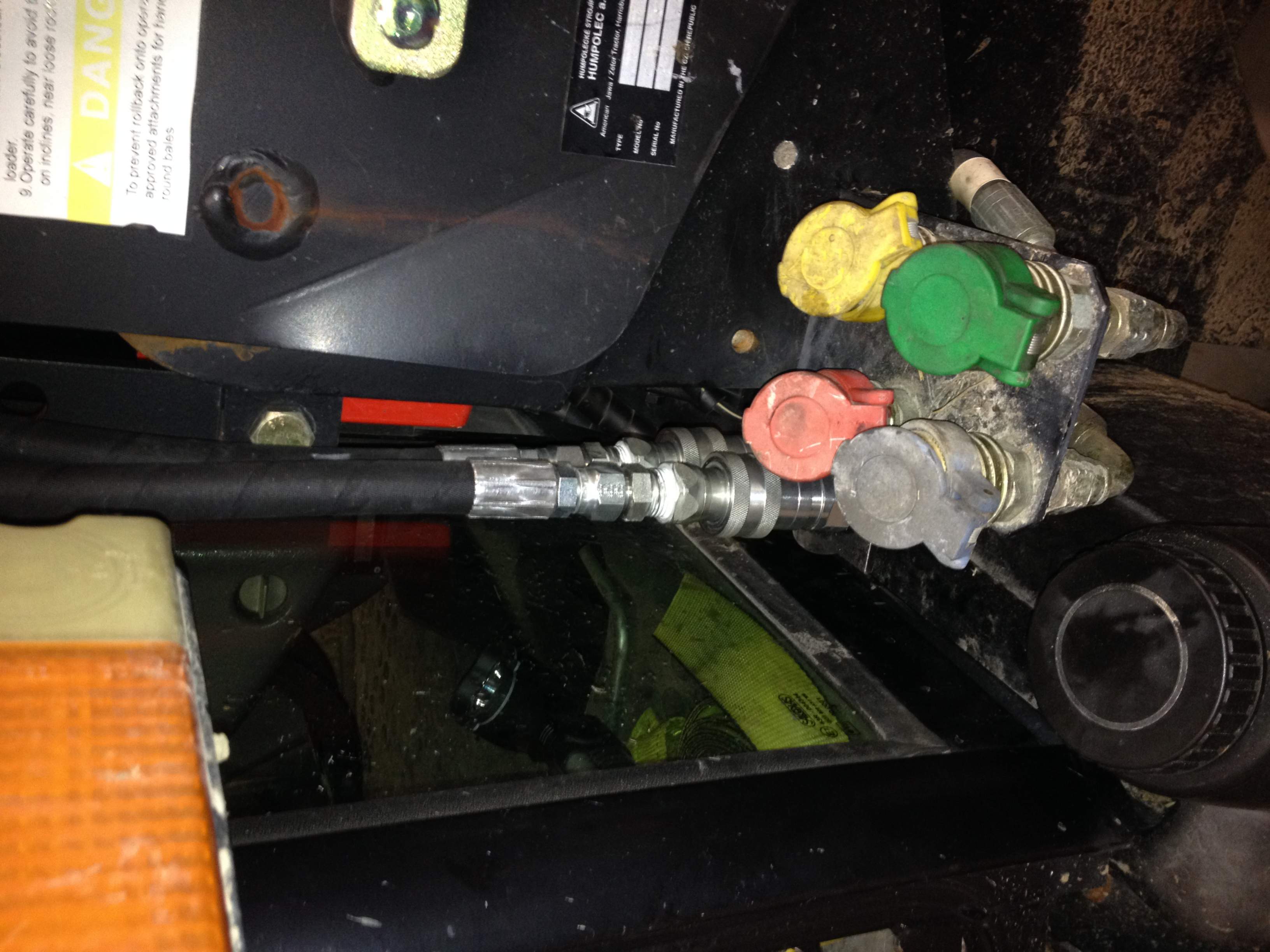 This is a spin off of my original post "Need help deciding on a grapple". I purchased almost all my parts list from the Surplus Center, the only thing I didn't purchase from SC was the QDs... I found a set of 6 QDs on ebay cheaper than 4 sets on SC website. I decided to put QDs at the FEL disconnect and at the torque tube both rigid mounted. I'm glad I put the QDs at the FEL disconnect because it wasn't easy routing the 1/2" lines under the cab. I took MtnviewRanch's (Brian) advice and tapped my brackets with 1/2 NPT tap to thread my JIC to NPT adapters into so I had a nice tight secure fit at the QDs. All in all the project was fairly simple and I really appreciate everyone suggestions from my previous thread. The entire project came in at 245.00. Here's a few install pics:
