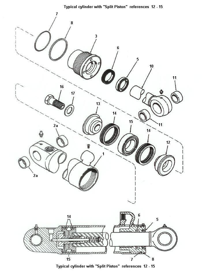 Also, in some cylinders (older Case, for example) the piston is split (see items 12,13,15) - regardless, since it's likely your GLAND seals are bad, the piston has to come off the rod in order to get the rod out of the gland.