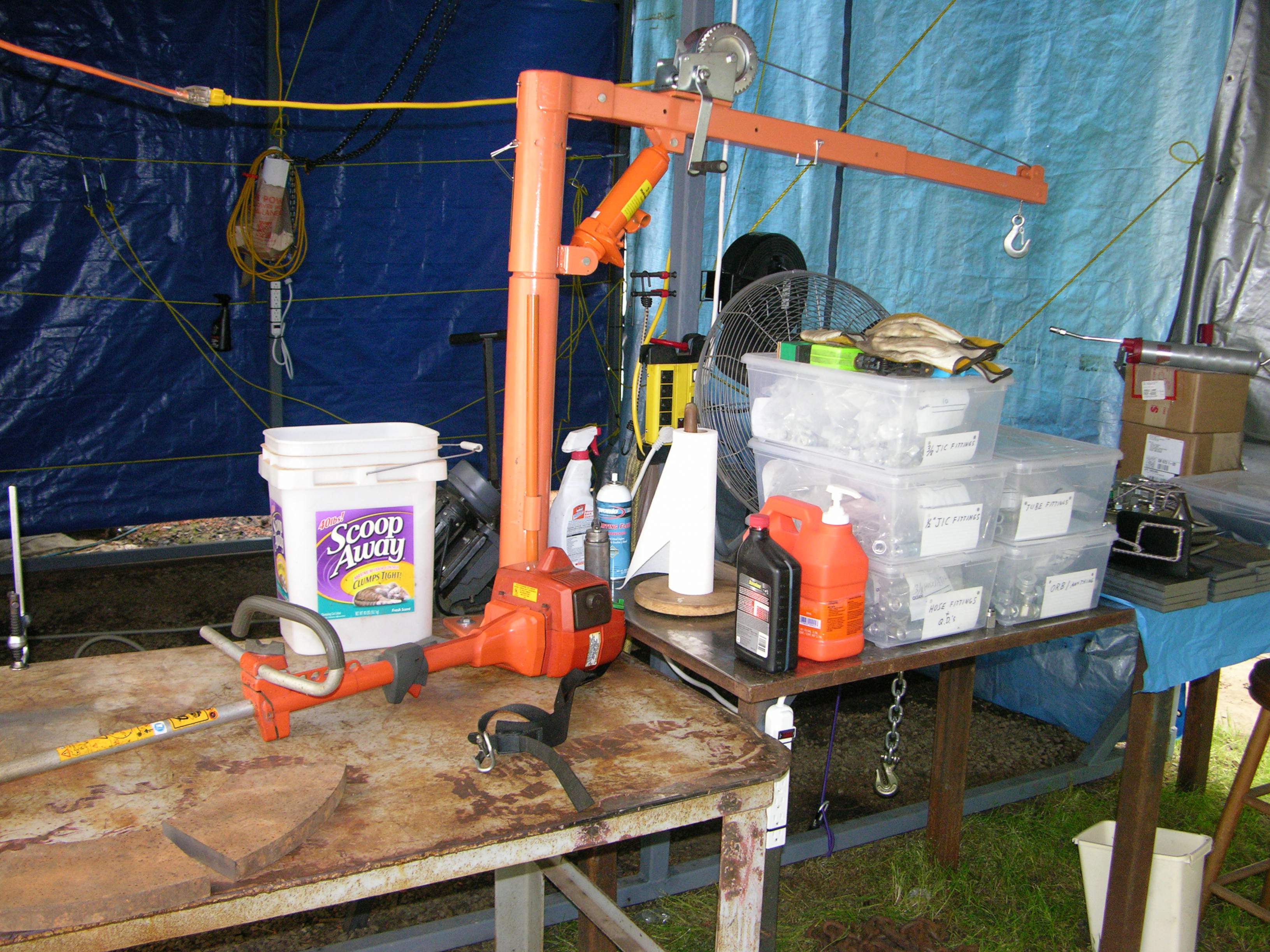 Here's the pick-up shop crane mounted on a 3'x5' steel table - DSCN1284.jpg Eventually I'll replace the PITA winch with an electric one, it's kinda hard to reach but it still beats using my back...