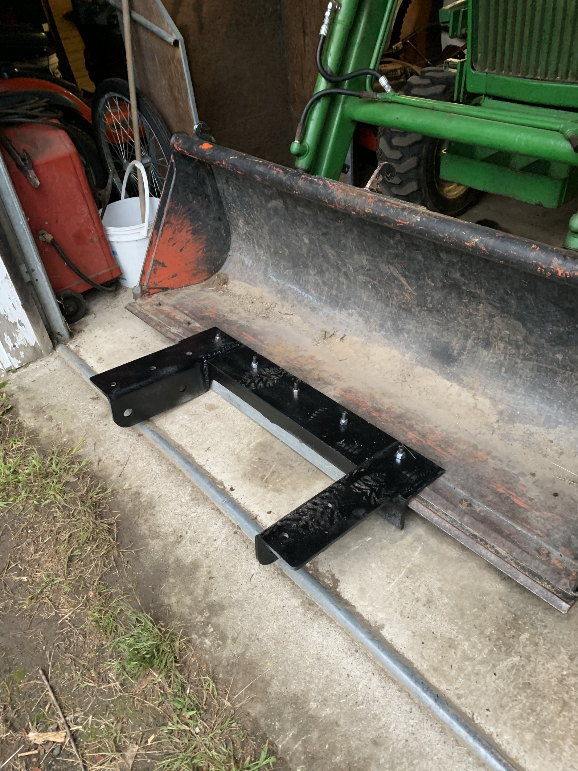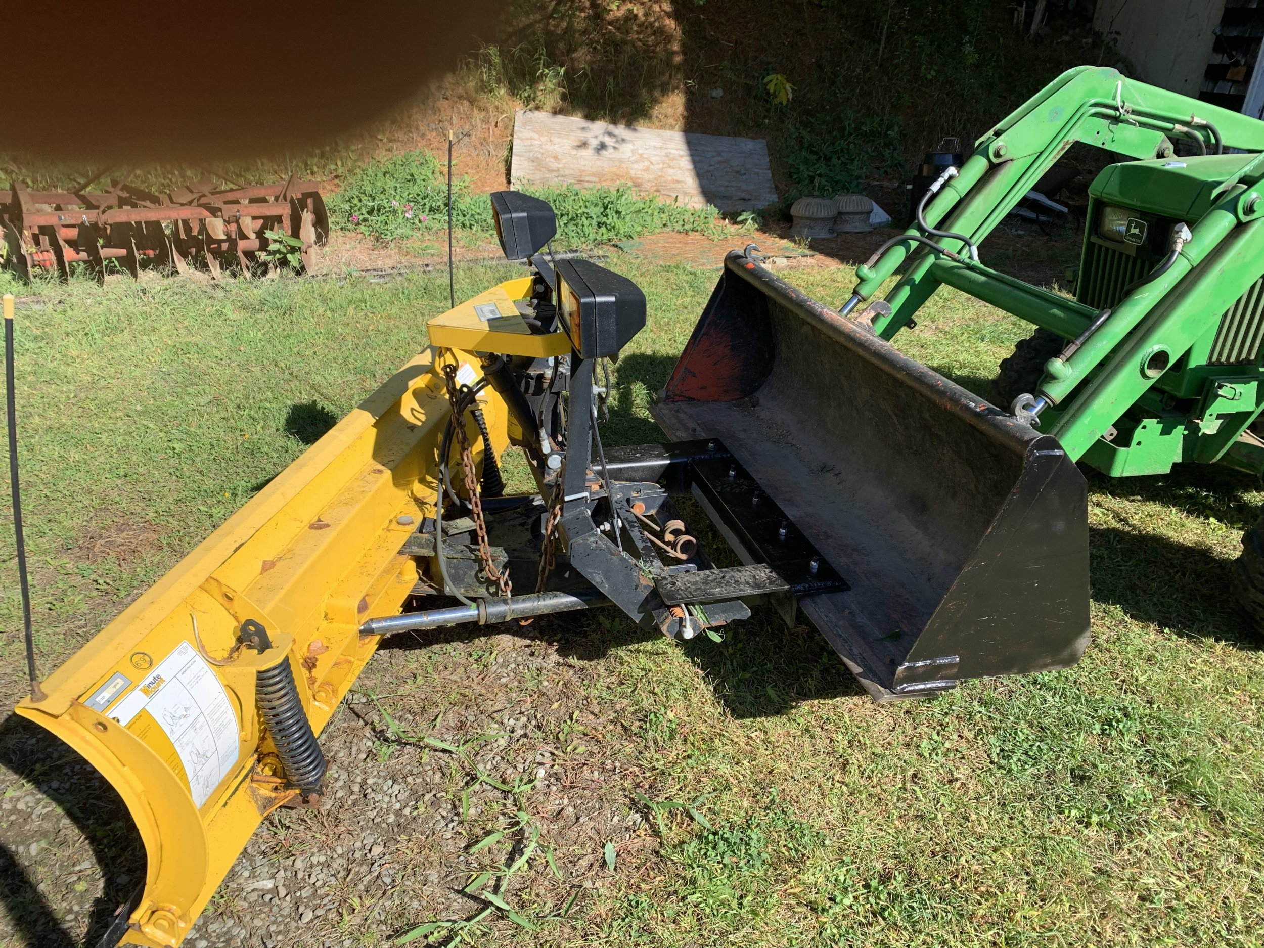 I made a bolt on plow frame for my bucket and a small truck plow. The plow pivots via the electric hydraulic pump.