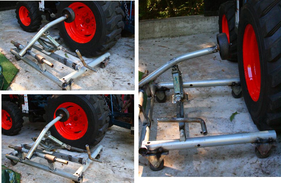 The scissor jack seems a bit handier than a hydraulic jack for tweaking up and down for the last small adjustments. The wheel on the end of the arm allows a surprising amount of "adjustment" to get the tractor tire in final position.