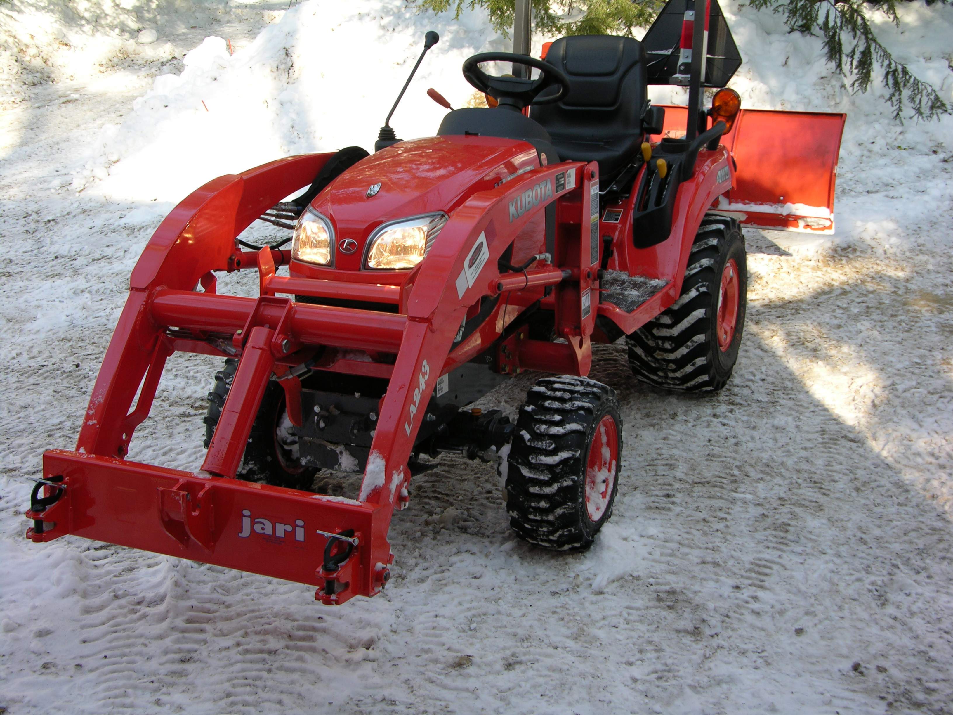 I have a BX 2360, I have set up my tractor up with a versa-daptor from Jari. I can drop my bucket on to a dolly and roll it out of the way and attached the plow blade to the fel. arms.