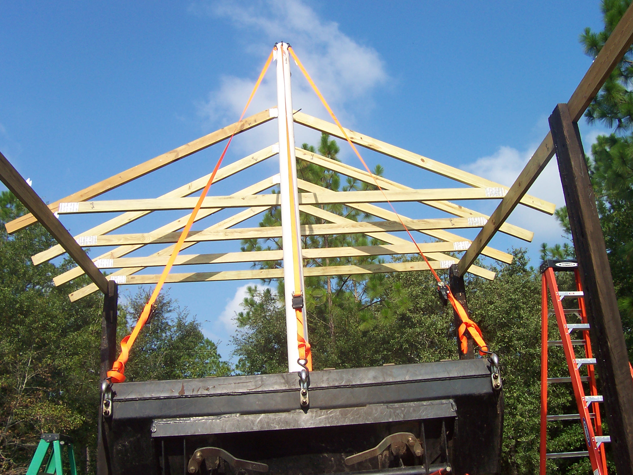 Since you guys already think I'm crazy for suggesting going down hills in 4wd, I'll show you my quick boom pole. I need to lift a couple (well 6) of 6"x12" x 12' laminated beams up 14' for building my barn. Seems to work fine when testing last night. See my barn building thread for the barn design.
