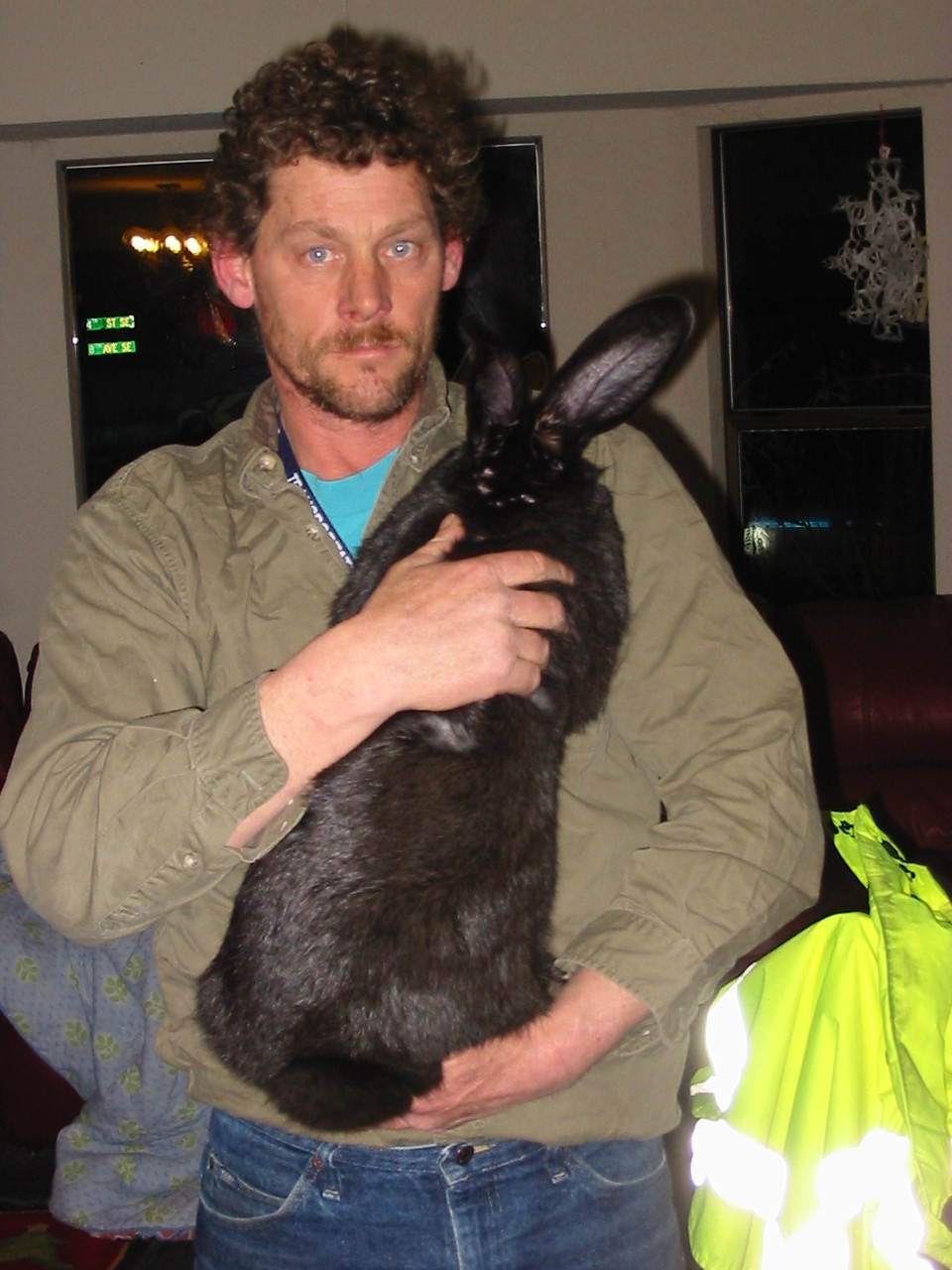 Our Flemish Giant is about 3 foot long when she stretches out.