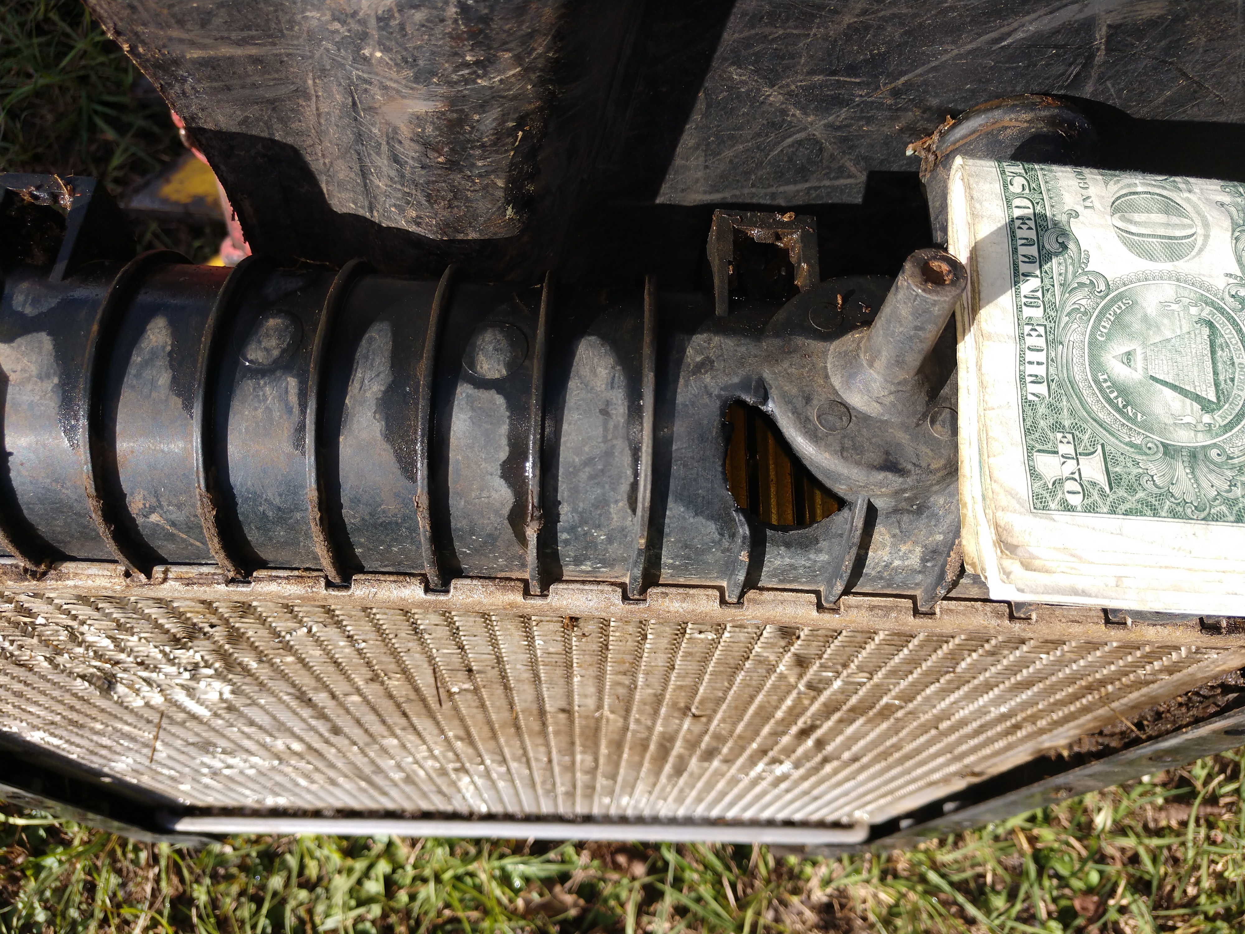 I put a hole in the bottom of my radiator, perhaps the size of a quarter. New from LS is $517.35 plus tax. Would it be possible to fix it somehow, maybe fiber glass? Any suggestion?