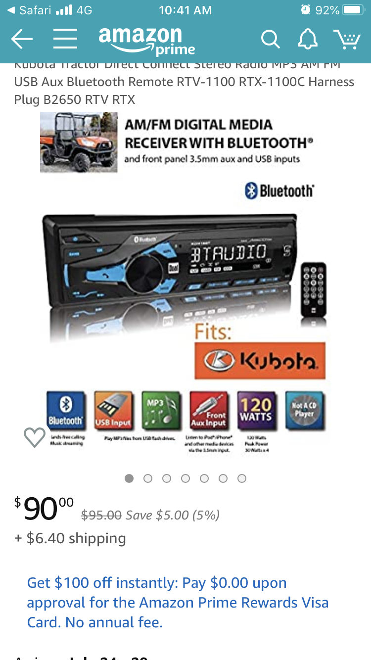 They have adapters, or at least the Kubota side of the adapter in addition to plug & play harnesses for radios they sell. A generic 1DIN radio will be $100 for a name brand one, probably $50 for a cheap one. $350 for their plug & play one that is allegedly ruggedized. No problems with my generic Kenwood automotive unit in 500 odd hours so far. Could afford to replace it a couple times & still come out better than the ruggedized one on the off chance it does quicker than in a car.