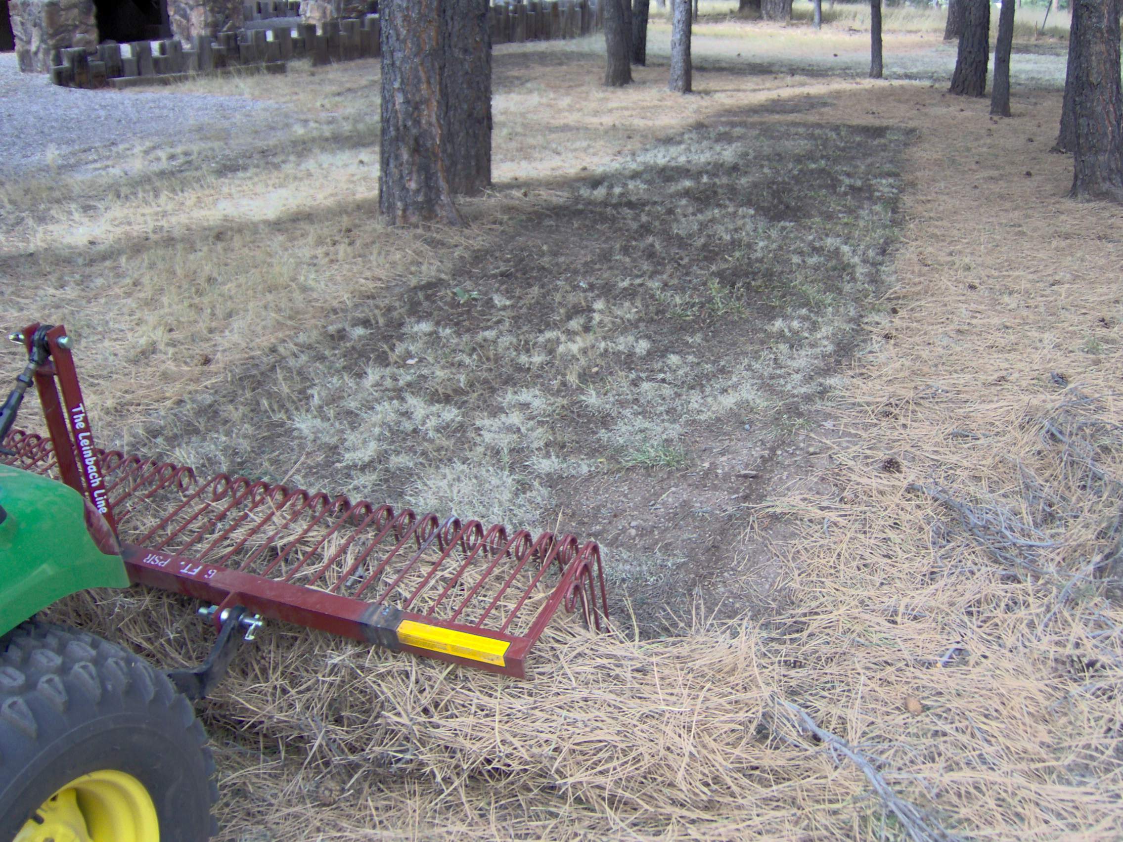 Does a very nice job on the needles. I have kept the landscape pretty natural. No lawn to mow, water, mess up with equipment, feed, thatch, aerate, etc. :)