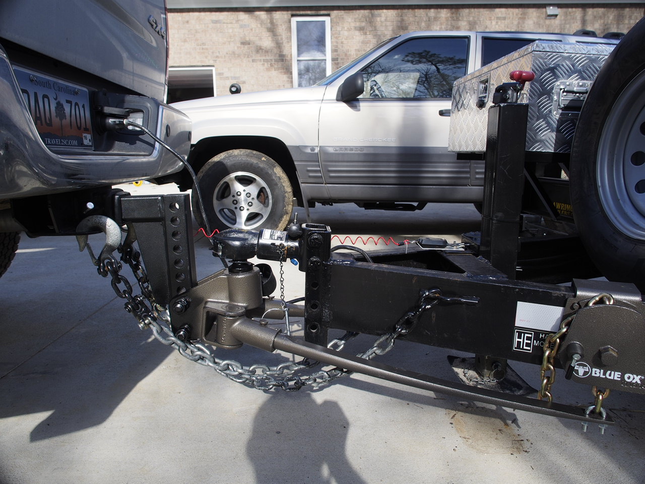 Here is my WDH. It is not a great picture since I am not sitting on level/even ground. Like sdef says the truck rides great with it. The truck rides better with a load and the WDH hitch hooked up than what is does with the trailer unloaded and the WDH not hooked up. I probably have 800-900lbs of tongue weight in that pic.