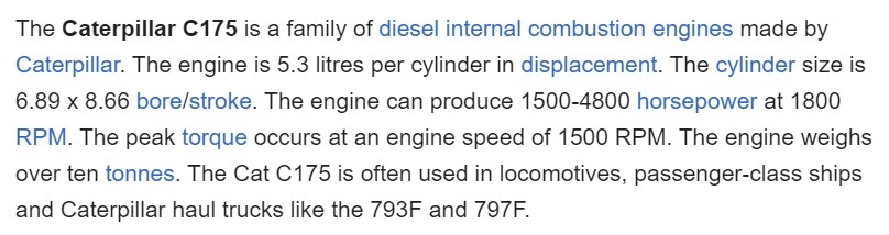 But when Caterpillar needed a REAL engine to put in their big equipment they went with a V. Either V16 or V20, take your pick. The V16 is what is in our haul trucks at the mines I worked at. And for those of you who are scared of a turbocharged engine...this thing runs 4 of them.