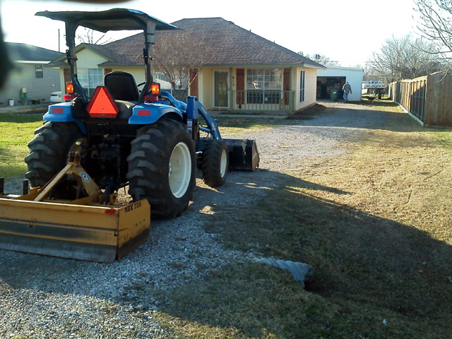 Here's a couple from today. I gave the homeowner some geotextile, so after I removed the grass for the extension and boat parking area, he laid it down and I spread base over it from the existing driveway. Then I spread 4-5" of 3/4"-minus crush over the entire driveway. I have a vibratory roller on Monday, so I'll roll this one and a couple more.