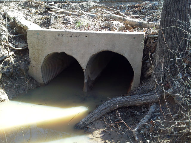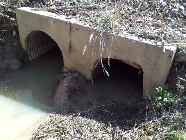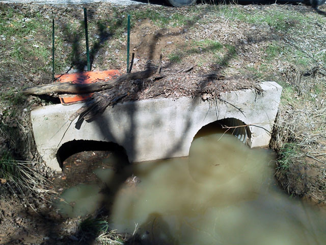 Did some debris cleanout for for a local HOA, so I can give them an assessment as to why they work so poorly. The headwalls were poured incorrectly, no wingwalls, pipes set too close together, both inlets are set at the wrong angle to the flow and one of the 36" culvert had collapsed. The collapse is actually four feet from the edge and under the road, which leads me to believe that it was crushed when the road was paved.