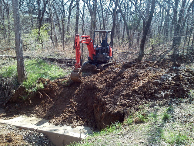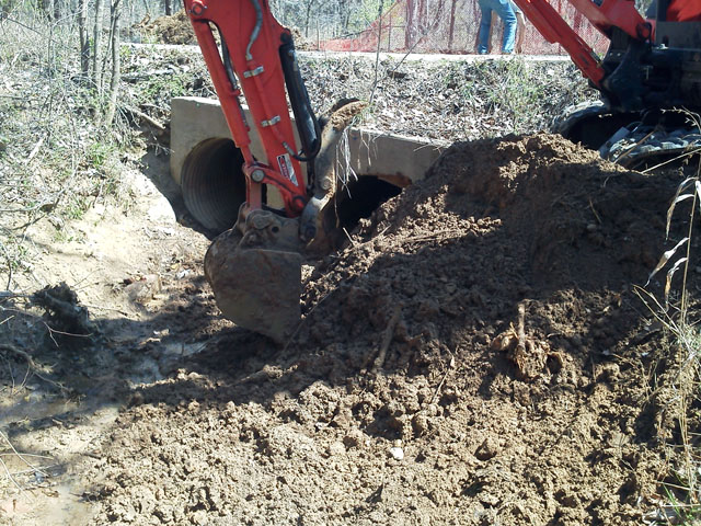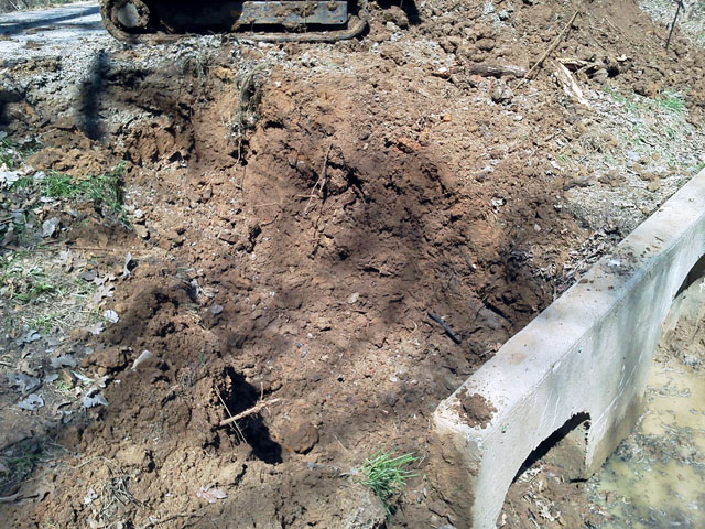 I stockpiles the debris, spread out all the muck so it can dry and exposed the collapsed pipe up to the edge of the road. We'll be back later to fix things up...after they give the bad news to the homeowners.