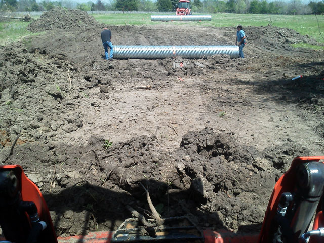 I just noticed in the culvert exit pic that you can still see brownish dirt from the rusty tractor axles and parts that I dug out.