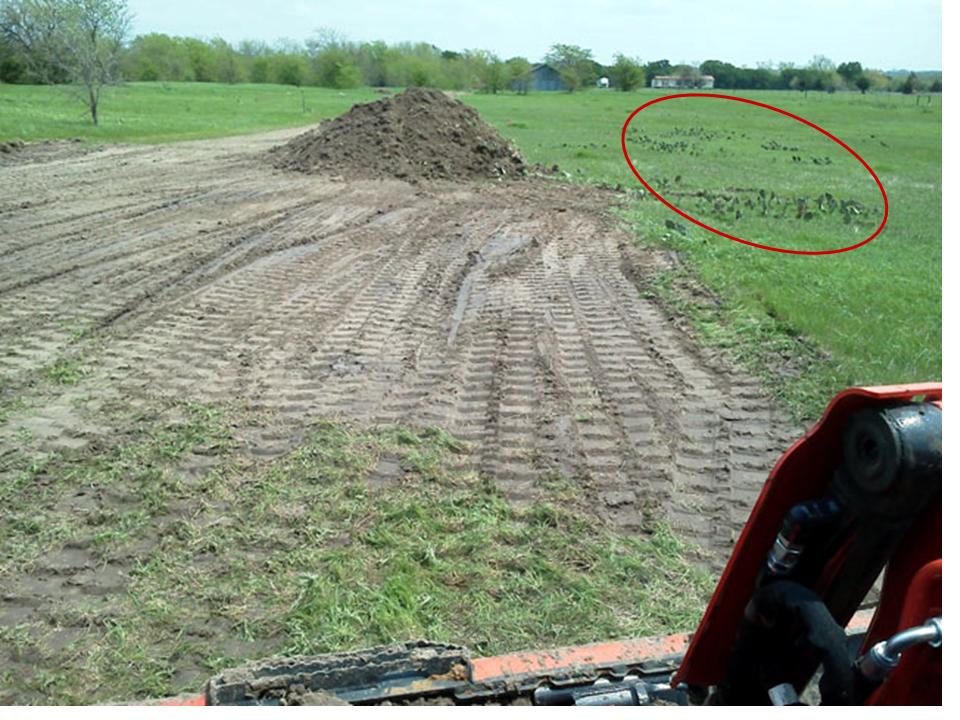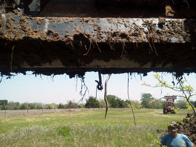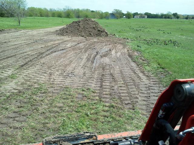 I sent my father-in-law out with his L4240 to fill some depressions left from another contractors leach field install. It should have been an easy ten yard topsoil spread. About an hour later I get a call from him..."I'm buried up to my axles!" He had broken through the hard top layer of clay and found the jello below. He got out, but made quite a mess doing it. Not his fault...Texas clay can have a pretty steep learning curve! So I told him to head on home.