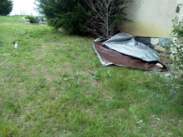 I wanted to let the bog dry out for a day, so I stripped the driveway with the power rake. Neither solenoid would work for the angle function, so I took off one of the side plates to help move material to the center. It took a bit longer than usual. Hmmm...looks like I smeared my camera lens with something or other.