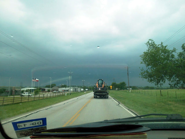 Talk about hitting a window of opportunity! It rained this morning, so I figured I'd wait until this afternoon, hoping to get the CASE out before the big storm hit. I checked...the ground was just dry enough to access the machine with the only 20k winch-equipped flatbed tow truck in the area (who happened to be heading back to the shop.) We got it loaded with raindrops just starting...hauled butt outta there back to the pavement and got it to my house right as it starting dumping rain bigtime. Yanked it off of the truck with my tractor in a full downpour.