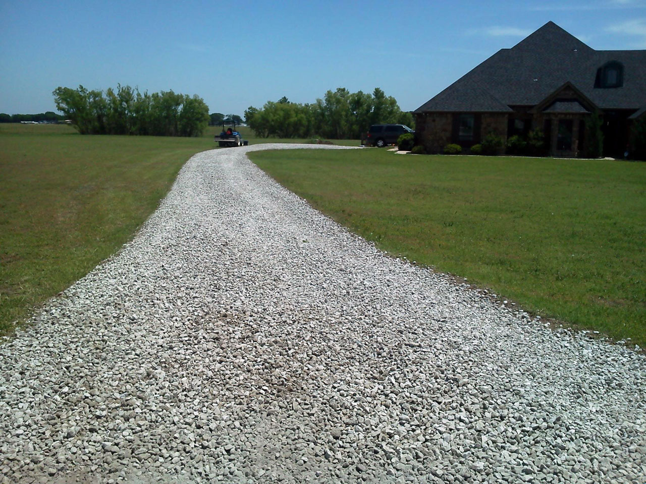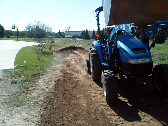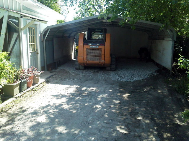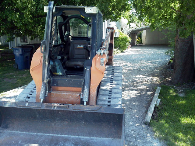 Here's a few from a driveway job a few weeks ago. Created a drainage swale and filled in a few low spots in the lawn while I was at it. Before I started I had to deal with a dead battery. I guess the jump from 85 degrees down to 32 overnight was just too much for it.