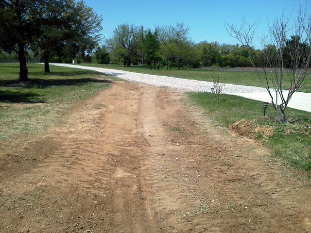 This driveway had been topped with recycle asphalt...kinda. There's always some shyster selling millings when the county is re-topping roads. The problem is that the county grinds the roads at different depths and the customer doesn't know if they're getting good asphalt or asphalt with roadbase or even asphalt with roadbase and dirt. This driveway was topped with RAP with a high content of dirt provided by our local big-name, second generation shyster and spread over the top of all of the grass in the old driveway...just like his daddy did. As you can see, I removed a bunch of grass out of the mix before regrading and topping.