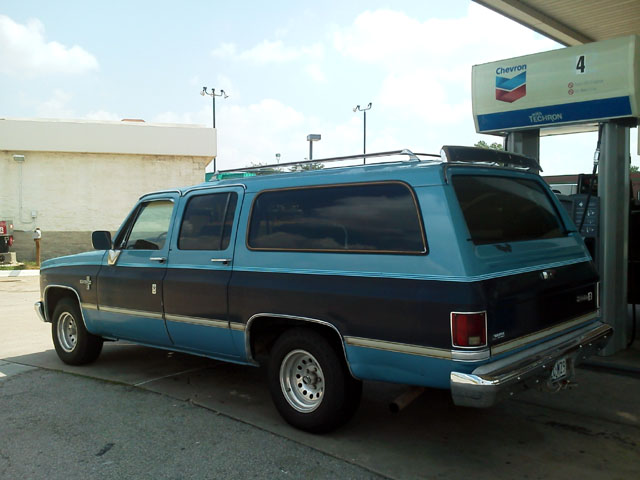 I couldn't pass up this 1985 Suburban for VERY cheap. New tires and a lot of new parts, only 79,000 miles, but more importantly...ice cold a/c! The two front seats need reupholstered, but the rest of the interior (including the third row seats) is in excellent shape. Like most GM products of this era, the clearcoat on the hood and roof is a bit rough. Thank the EPA for that. The rest of the paint shined up nicely after a little half hour TR3 massage.