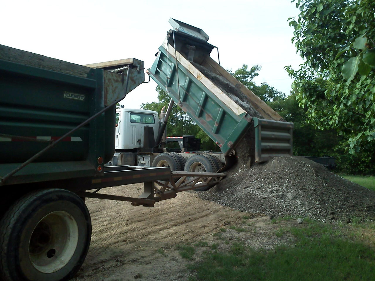 Graveled a small parking area and walkway today for a RE investor. In this particular area, sandstone lies only a few inches under the sandy soil, so I made sure not to get into that mess. I laid down a few inches of washout and topped it with 3/4 minus.