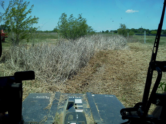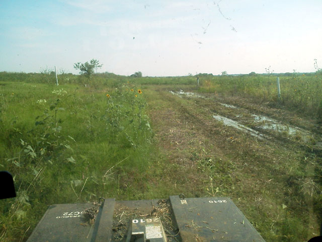 Back with the tractor to clear back behind the utilities on the opposite side and locate water lines. Note the tree growing from the base of the leaking hydrant.