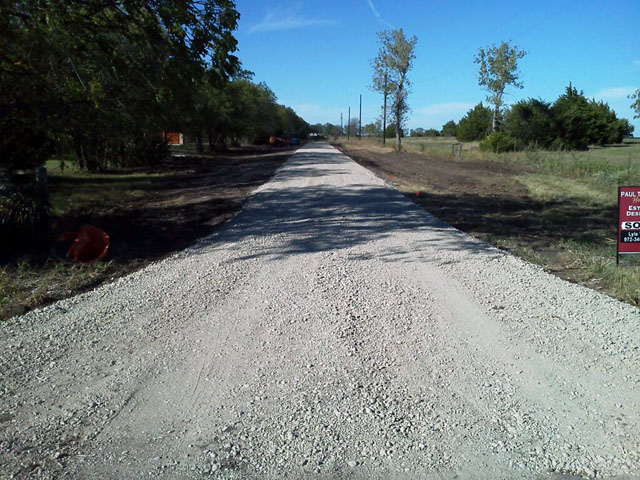 Since the easement had a topping of RAP, there was only room to dump one load at a time at the entrance to the new drive.