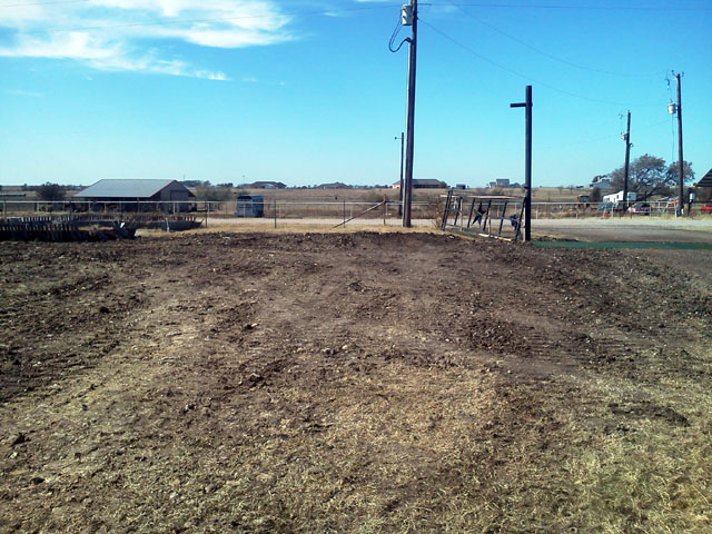 Spread out fifty yards or so of mucky, rocky black gunk this morning and dressed up the RAP next to the cattle guard.