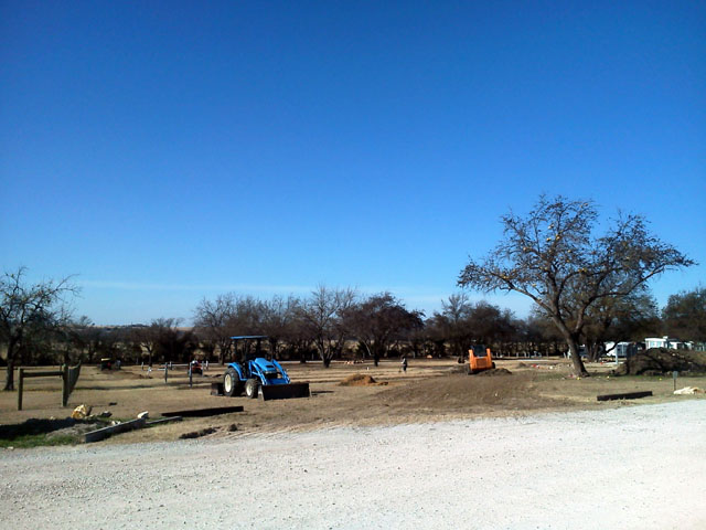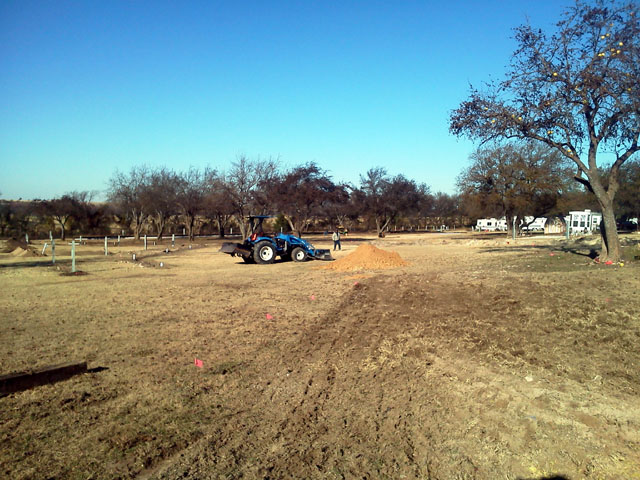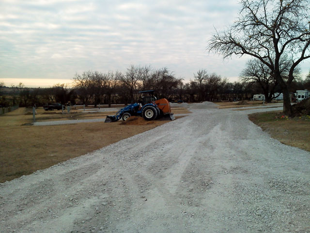 Here are a few photos of an RV park expansion I'm working on. Grading and gravel for 24 new sites and a bunch of roadway. The owner wanted the job to be done as close to December 1st as possible. The utility and sewer guys started three weeks ago...I started grading last Friday. I caught up to them Saturday. I got another job done Monday, started again Tuesday...hopping from the CTL (grading) to the tractor (spreading gravel), and caught up to them again this afternoon. If it doesn't rain I'll run right over them and have the job finished tomorrow. :D