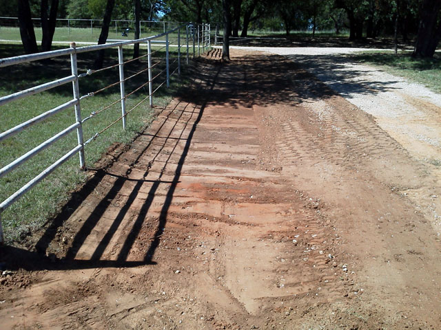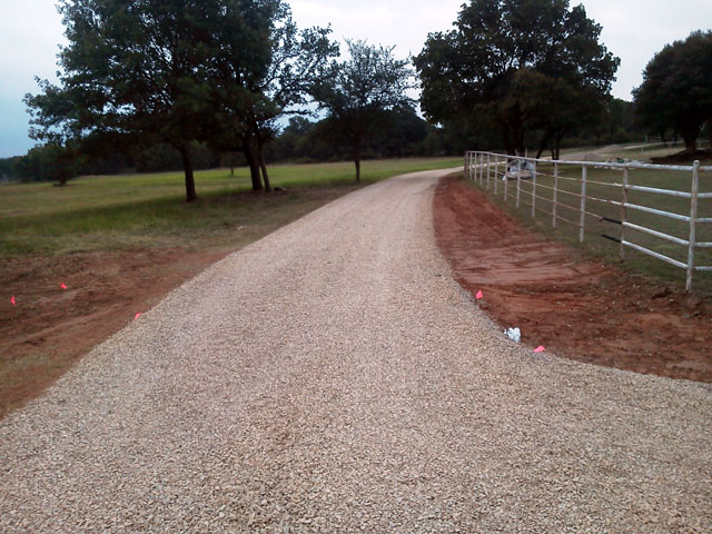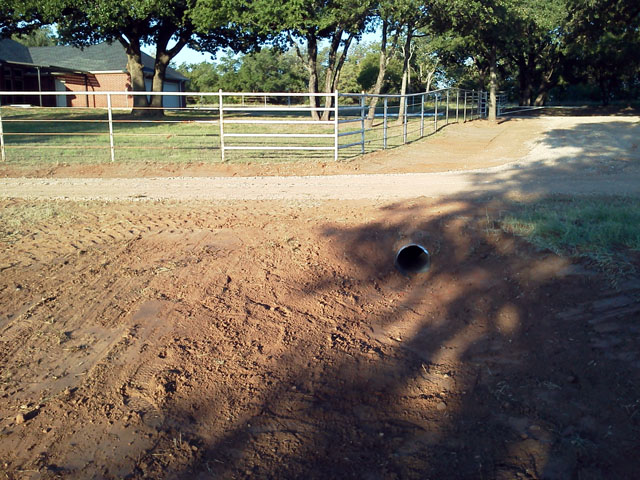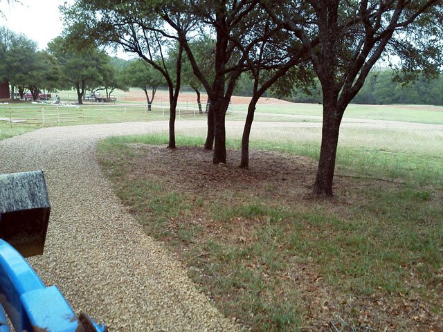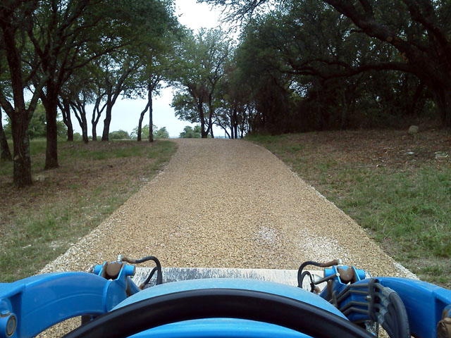 Here's a few pics of another 1/4 mile driveway, mowable swales and cross-driveway culverts. Finished up this job in the rain and got soaked to the bone. Better than sweating!
