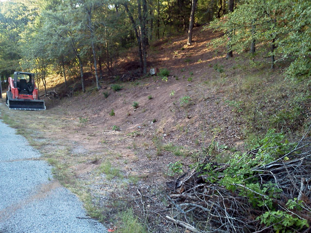 The customer is planning to haul the dirt pile with his tractor bucket by bucket to the back of his property for a gun range backstop. I guess he needs a little seat time!