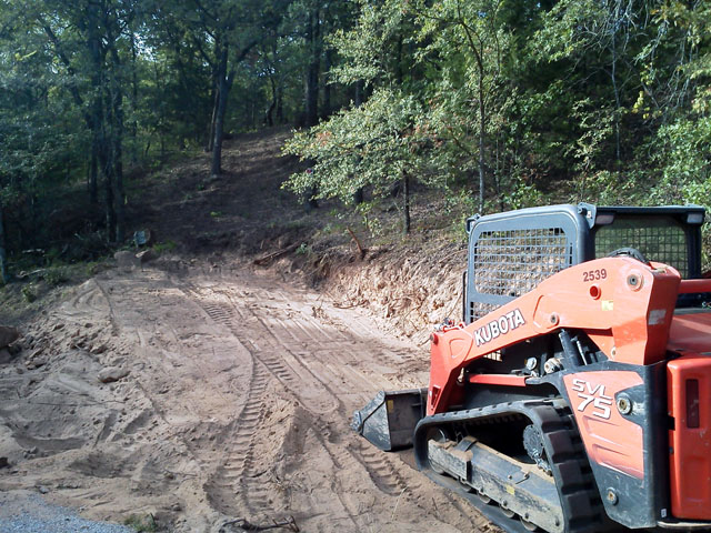 Here's a hillside rough-in and culvert install. The hill gets too steep and rocky where I stopped for the ctl to be effective. I'll be back with the mini-ex to finish cutting the road, dress up the slope and cut a swale.